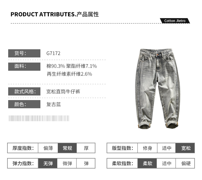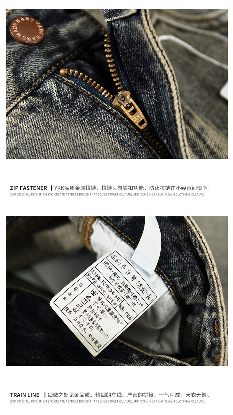 G7172 새로운 패션 트렌드 남자의 복고풍 씻어 데님 캐주얼 바지 남자의 바지 머리카락의 세대스토어 가기