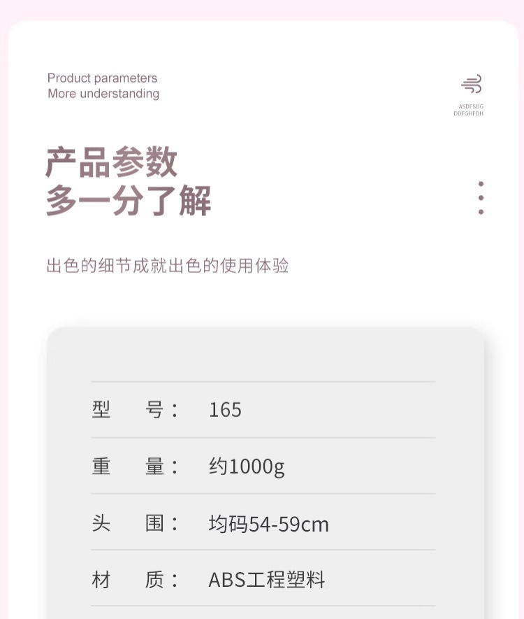4.大小尺寸:均码,头围尺寸:52-62cm,含内盒重量:1.1KG。
