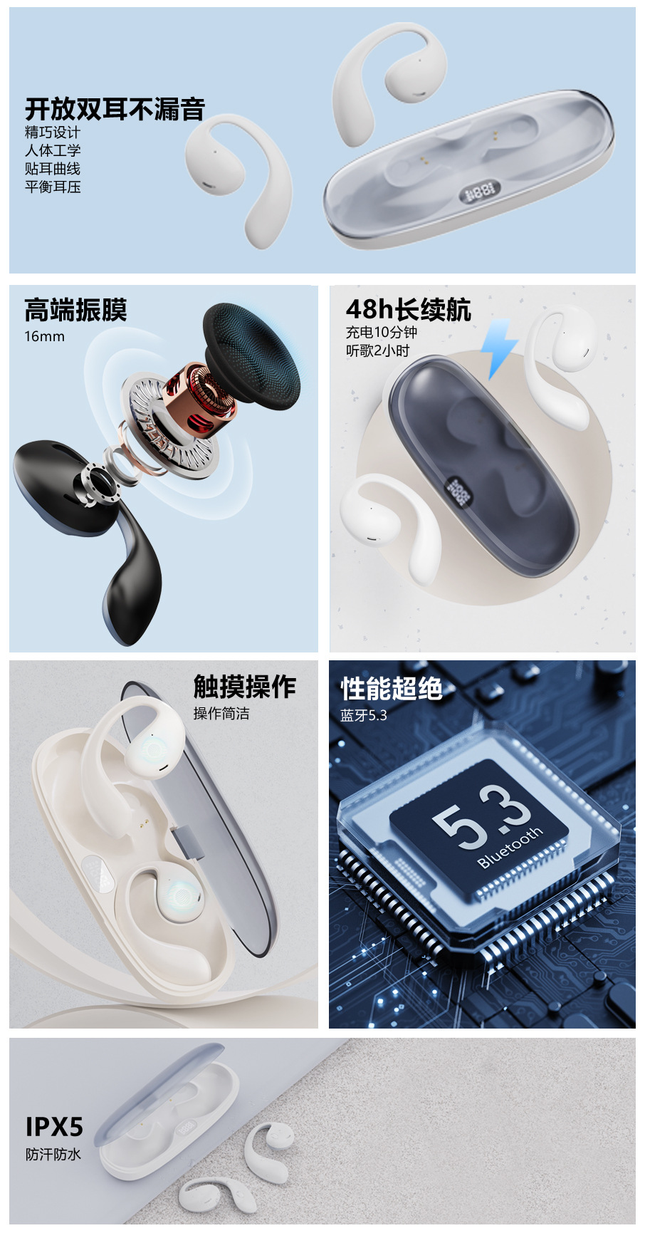 무선 귀걸이형 블루투스 헤드셋, 골전도, 귀에 밀착되지 않음, 스포츠용, 뛰어난 품질, 긴 배터리 수명, 도매스토어 가기