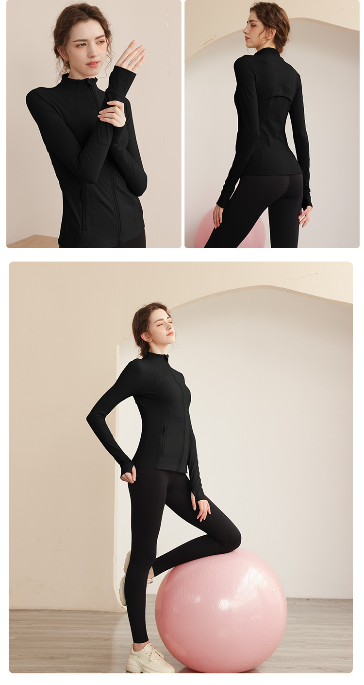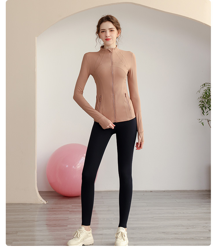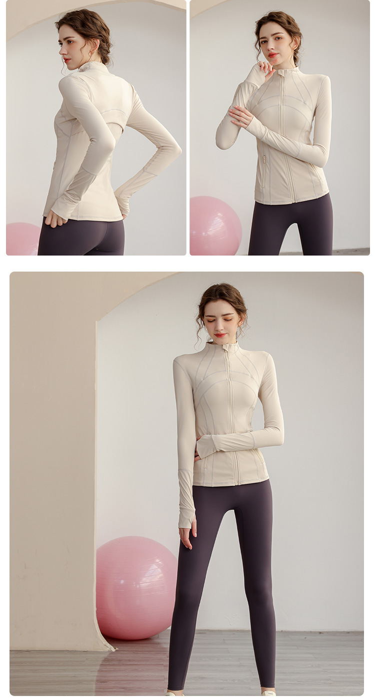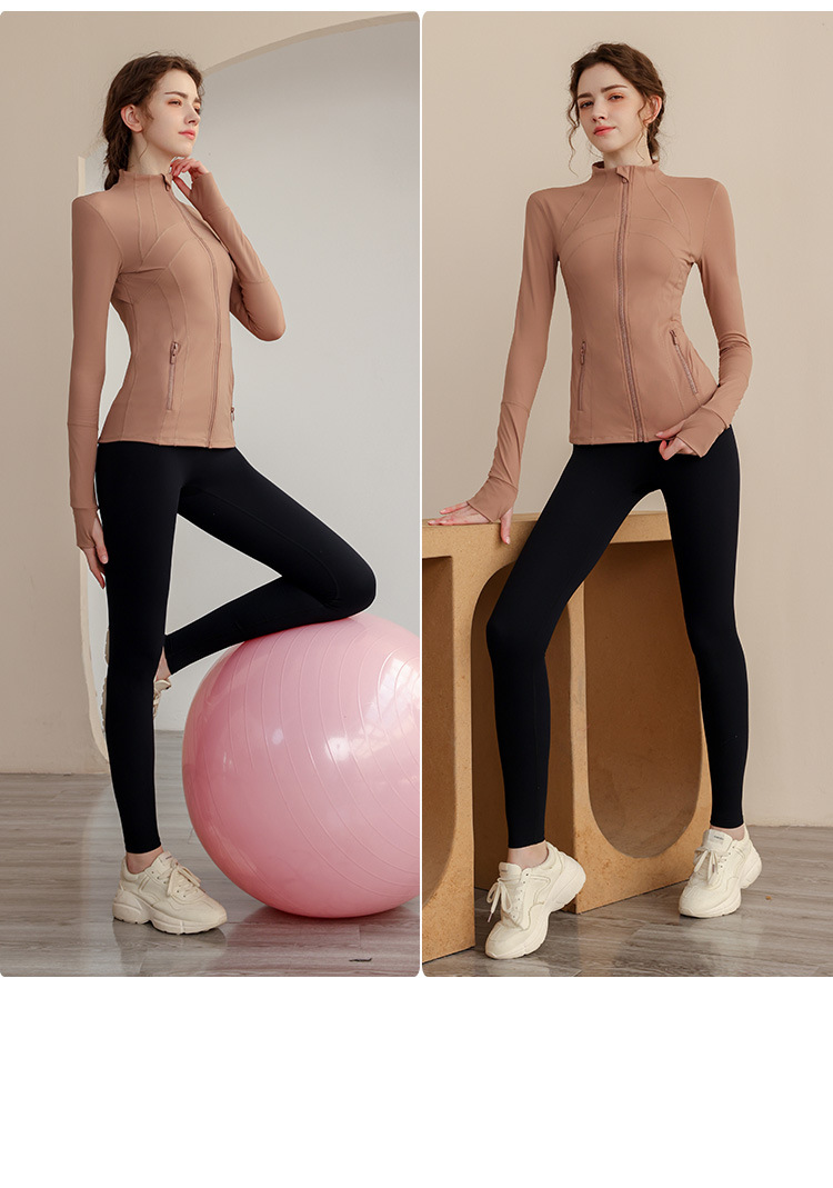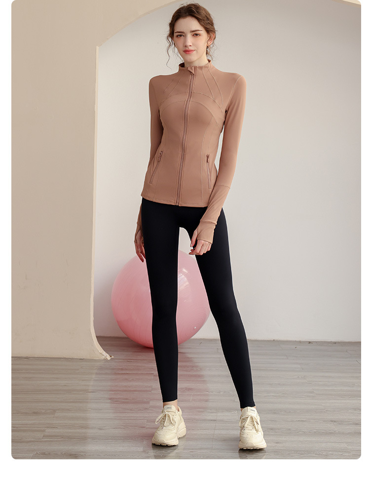 가을과 겨울 벨벳 시즌 스포츠 외부 착용 탑 긴 소매 지퍼 재킷 타이트 커프단추 체육관 높은 칼라 요가 여성용 옷스토어 가기
