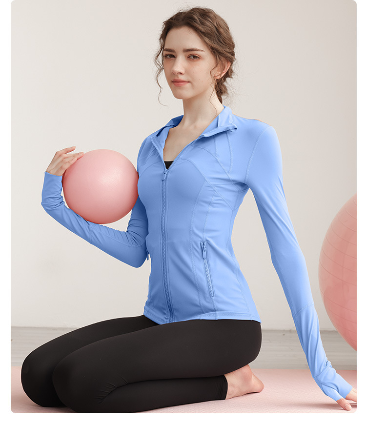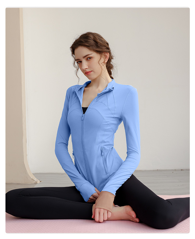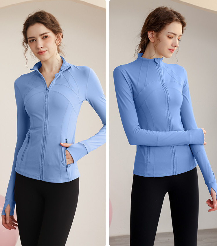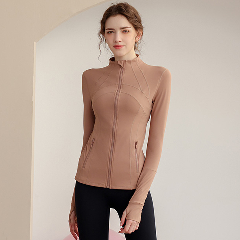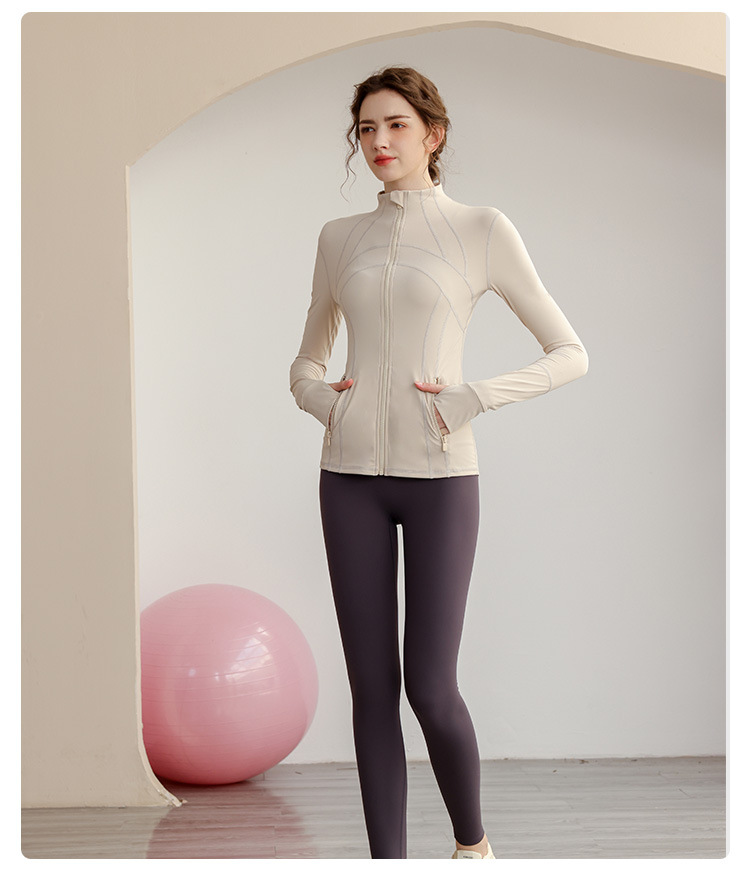 가을과 겨울 벨벳 시즌 스포츠 외부 착용 탑 긴 소매 지퍼 재킷 타이트 커프단추 체육관 높은 칼라 요가 여성용 옷스토어 가기