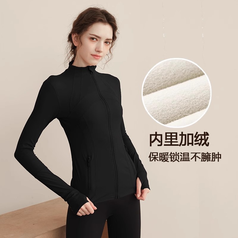 가을과 겨울 벨벳 시즌 스포츠 외부 착용 탑 긴 소매 지퍼 재킷 타이트 커프단추 체육관 높은 칼라 요가 여성용 옷