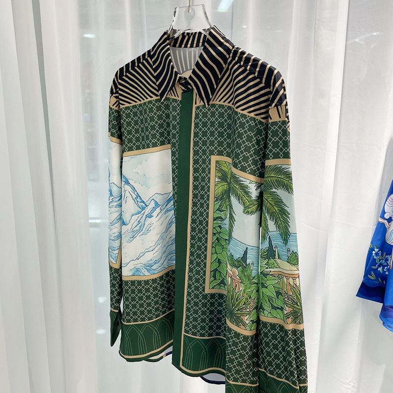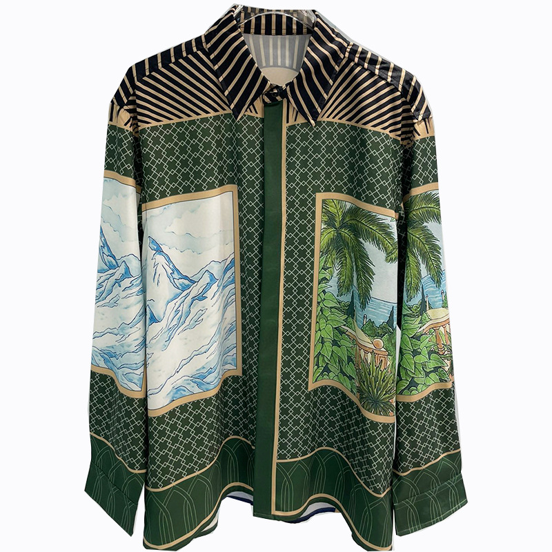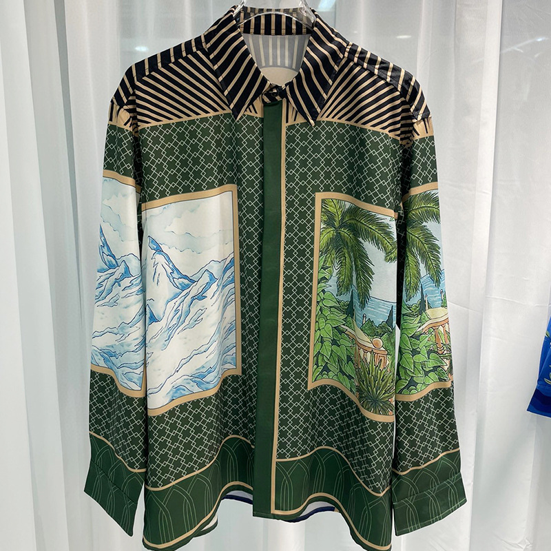 2023 새로운 유럽과 미국 트렌드 국경 간 무역 패션 레저 청소년 인기 디지털 인쇄 남성용 긴팔 셔츠