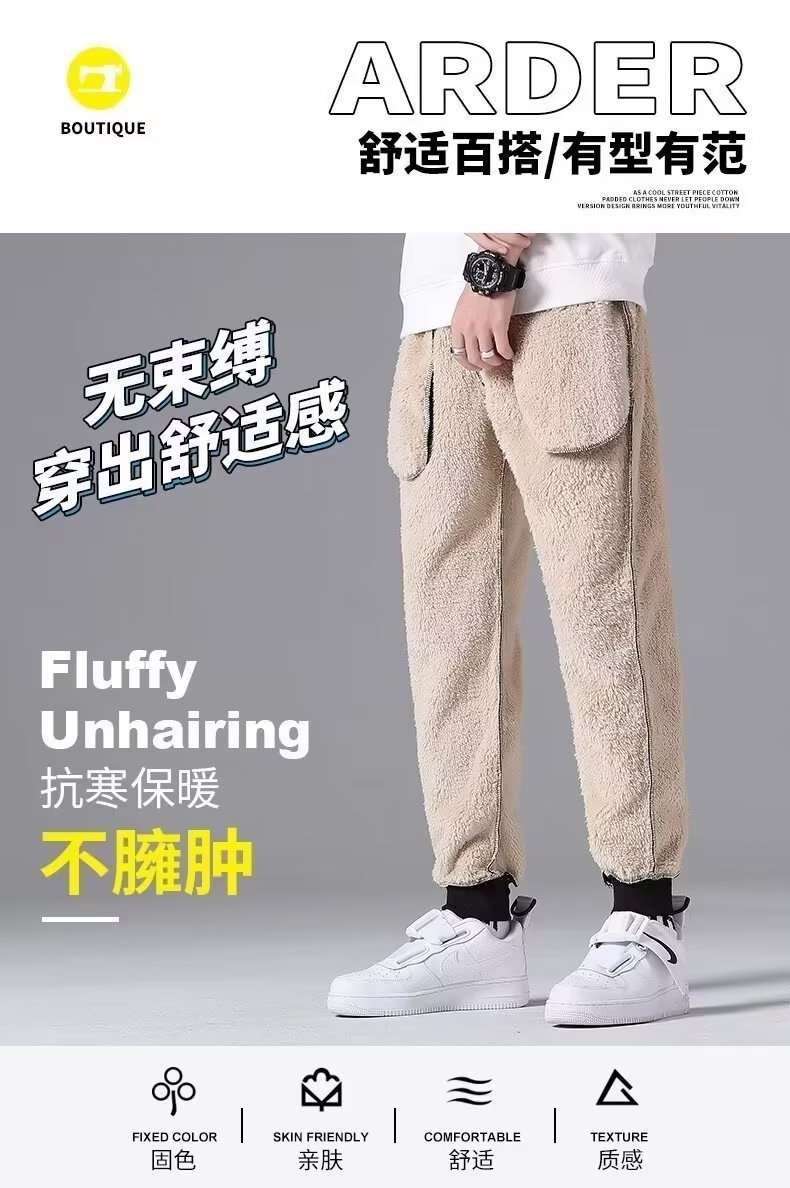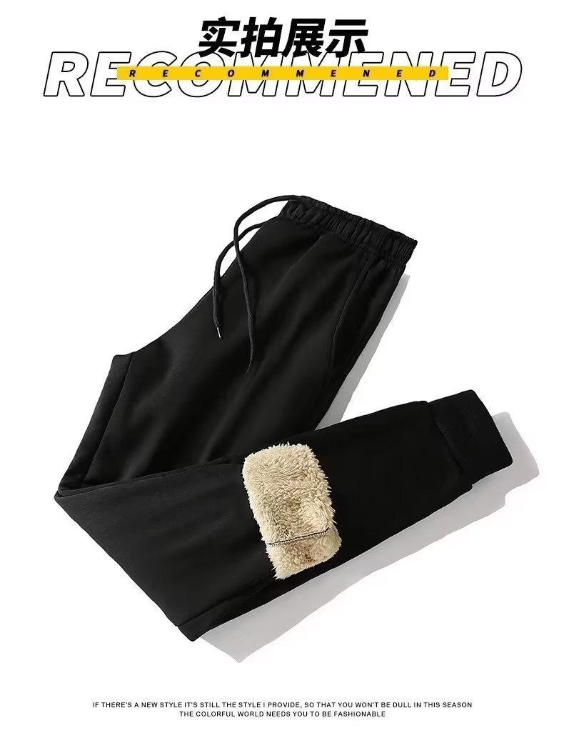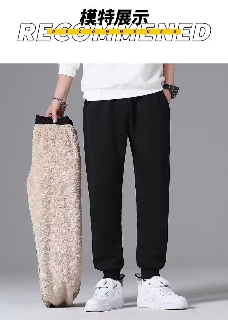 2023 겨울 새로운 스포츠 벨벳 바지 남자의 기모 두꺼운 느슨한 다리 스포츠 캐주얼 느슨한 심플 바지스토어 가기