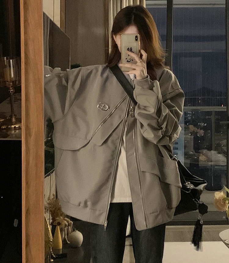 아메리칸 스타일 하이 스트리트 디자인 센스 플라잉 세트 코트 여성의 봄과 가을 느슨한 불규칙한 남여 공용 작업 재킷 야구 세트 유행스토어 가기