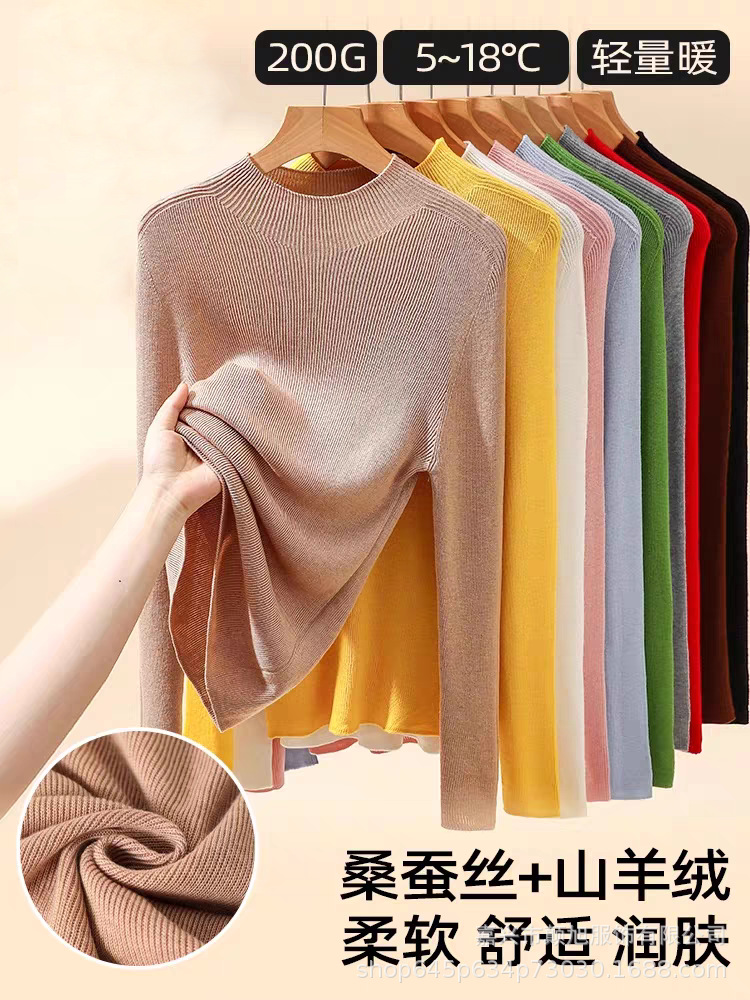 기계 빨 뽕나무 실크 캐시미어베이스 셔츠 여성의 가을과 겨울 슬리밍 기성품 의류 스레드 니트 울 베이스 셔츠 여성스토어 가기