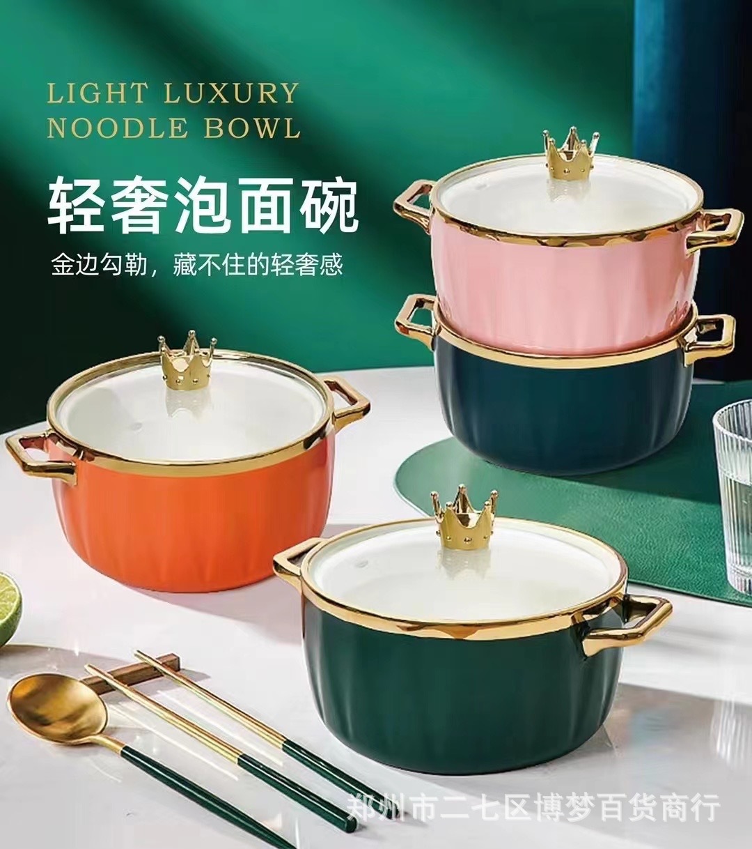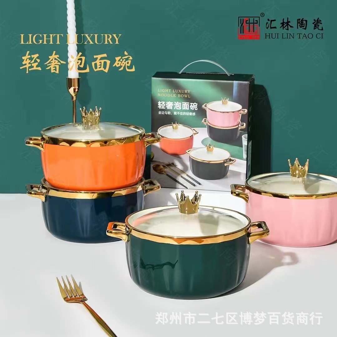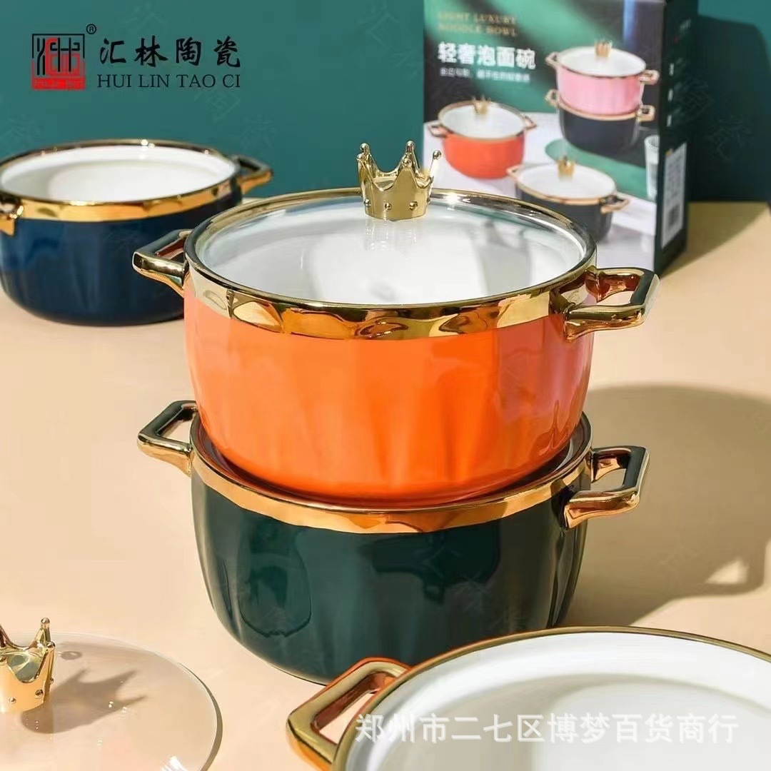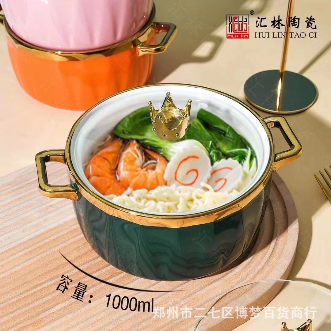 북유럽 크리에이 티브 세라믹 국수 그릇 새로운 항목 럭셔리 프놈펜 대용량 수프 그릇 손잡이와 높은 색상 가치 식기 세트스토어 가기
