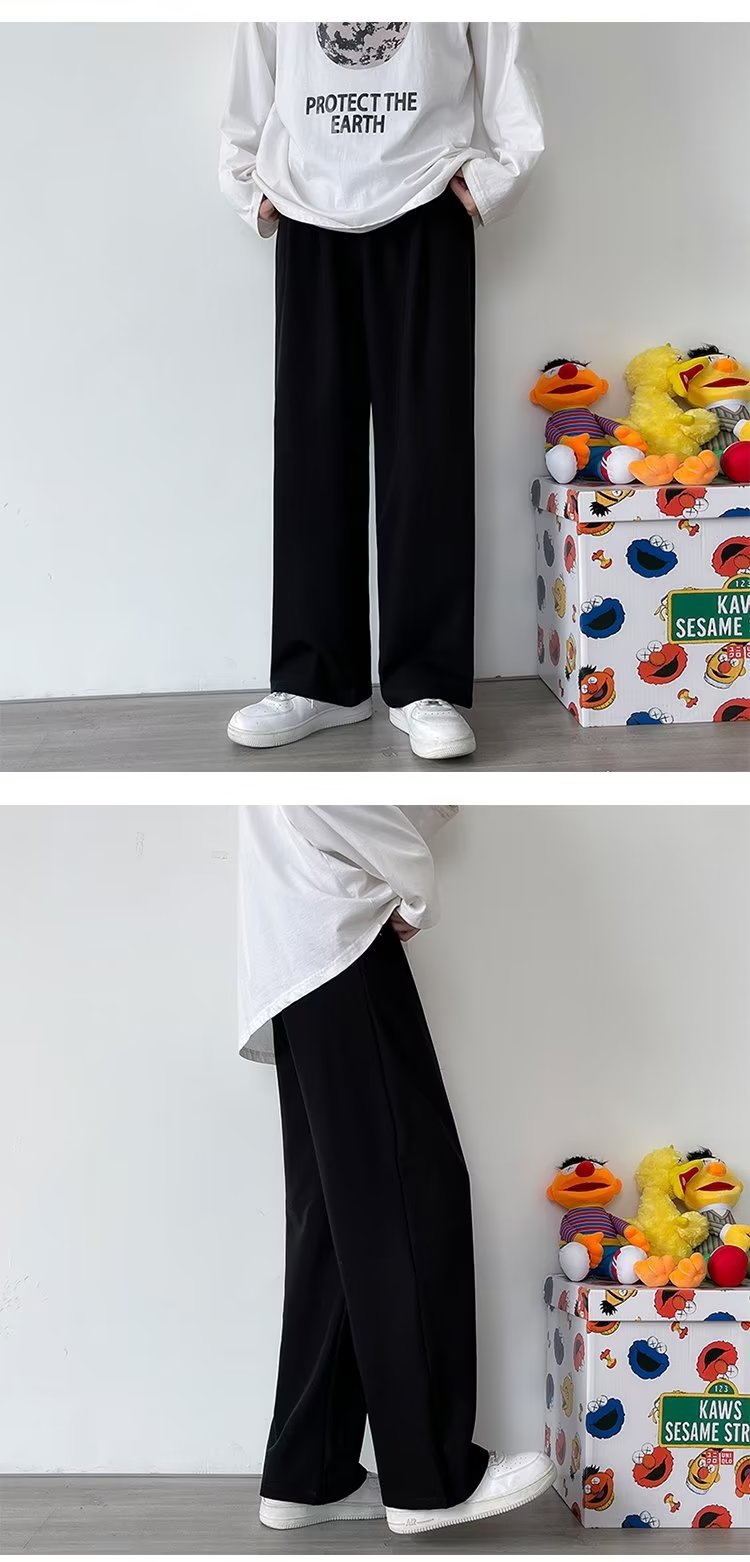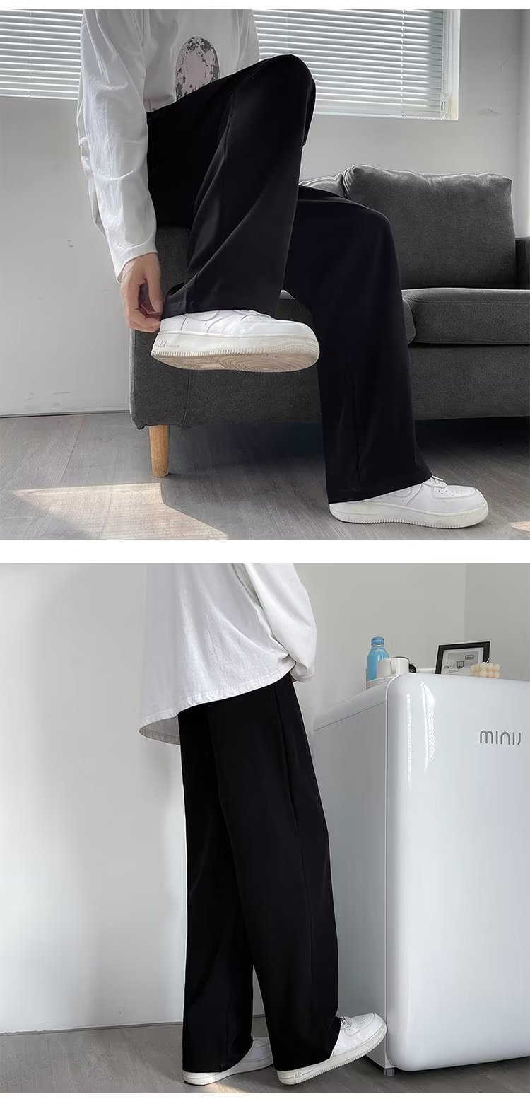 남자의 여름 플러스 사이즈 트렌디 느슨한 스트레이트 바지 얇은 와이드 다리 세트 바지 캐주얼 바지