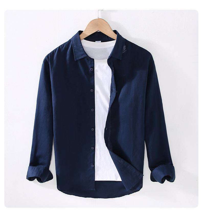 9027 봄 여름 신작 린넨 화이트 긴팔 셔츠 남성용 면 및 린넨 셔츠 남성용 비즈니스 캐주얼 린넨 셔츠