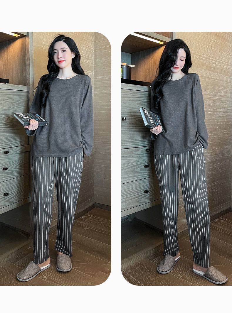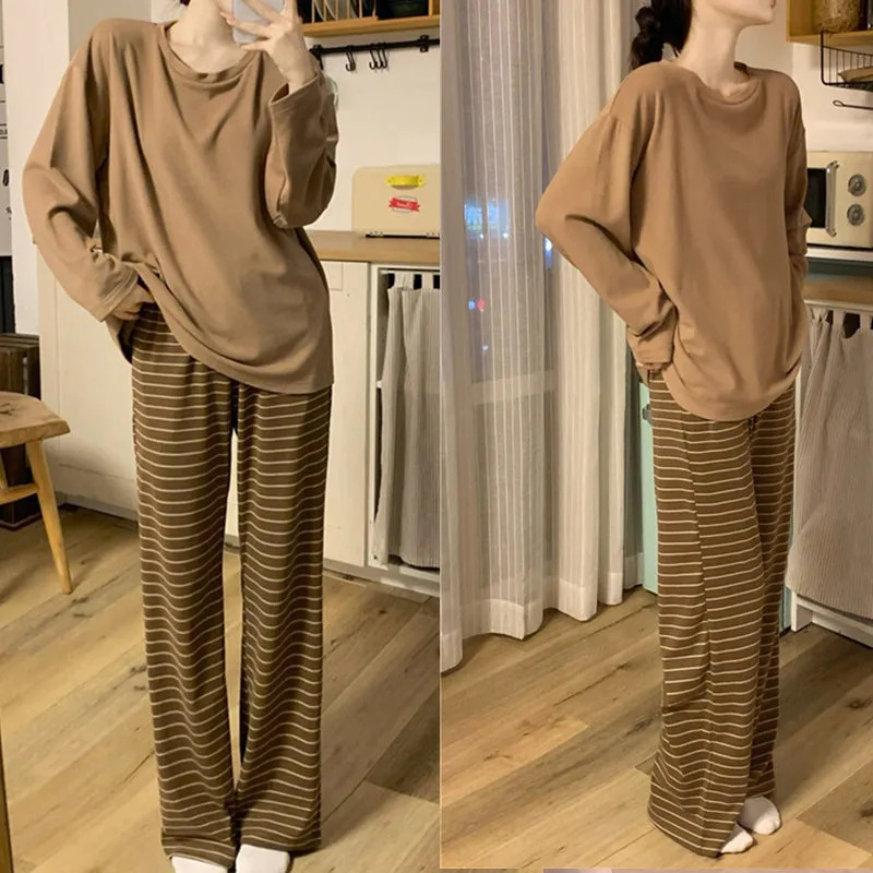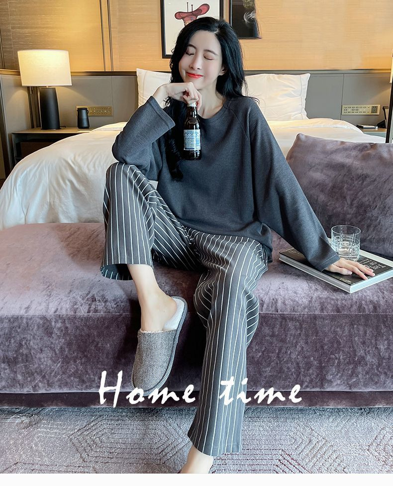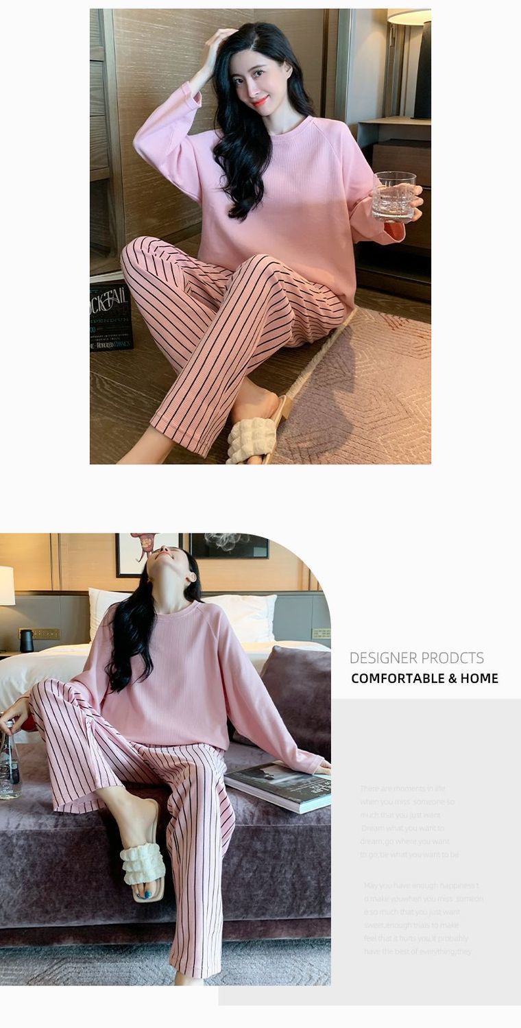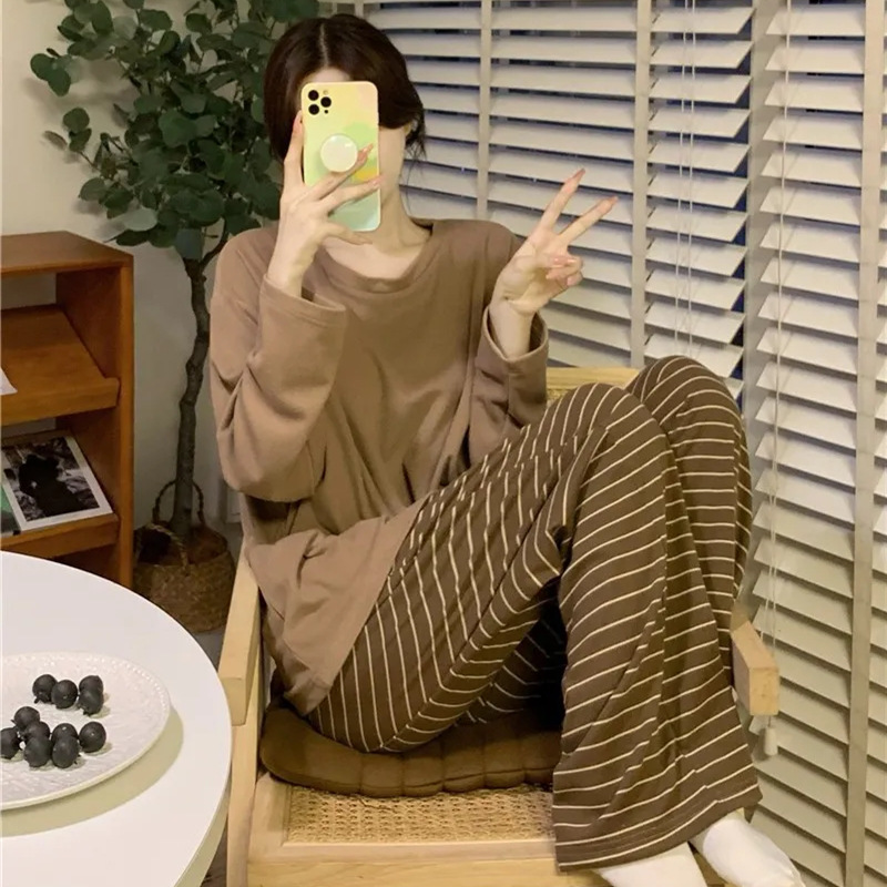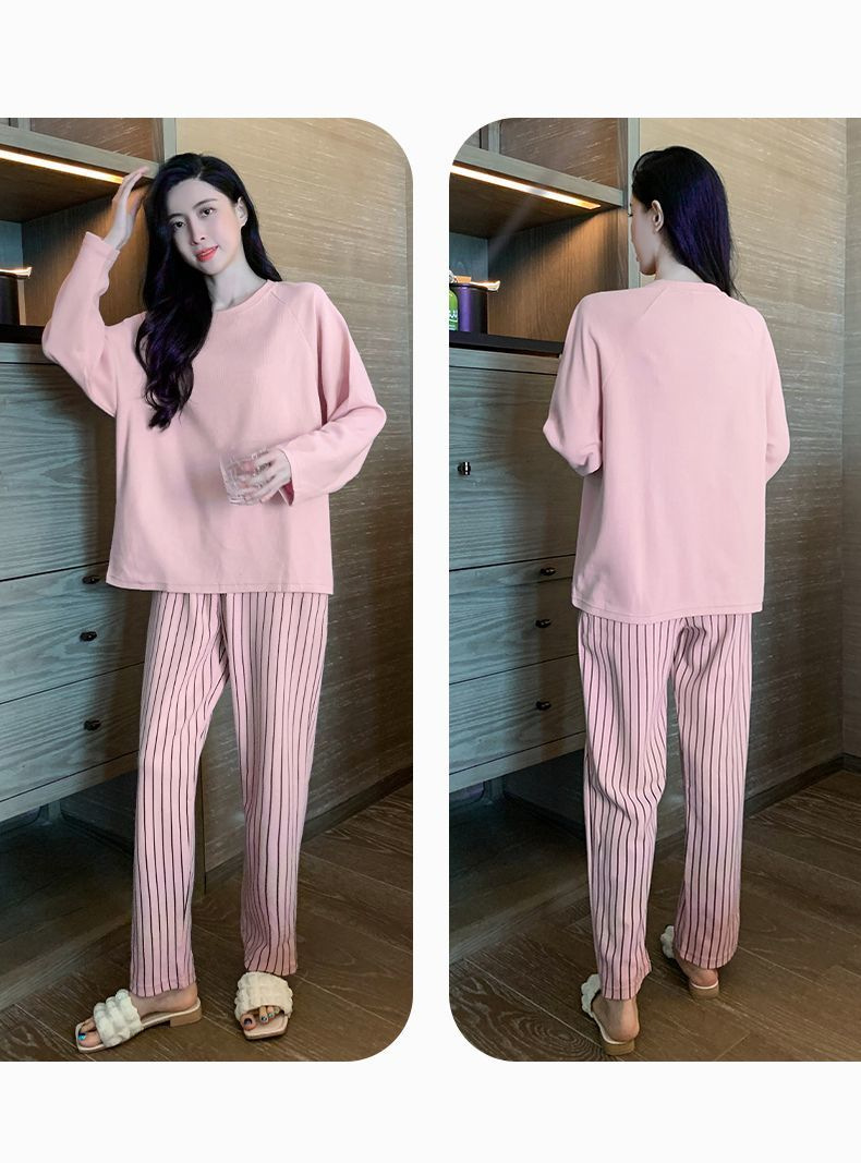 만화 달콤한 딸기 곰 크루넥 긴 소매 잠옷 여자 가슴 패드 봄과 가을 캐주얼 소녀 느슨한 플러스 뚱뚱한 세트
