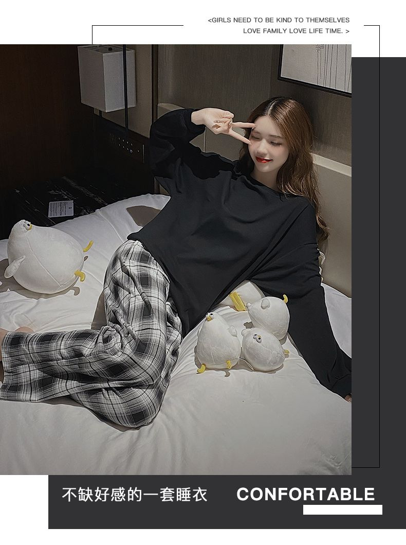 만화 달콤한 딸기 곰 크루넥 긴 소매 잠옷 여자 가슴 패드 봄과 가을 캐주얼 소녀 느슨한 플러스 뚱뚱한 세트스토어 가기