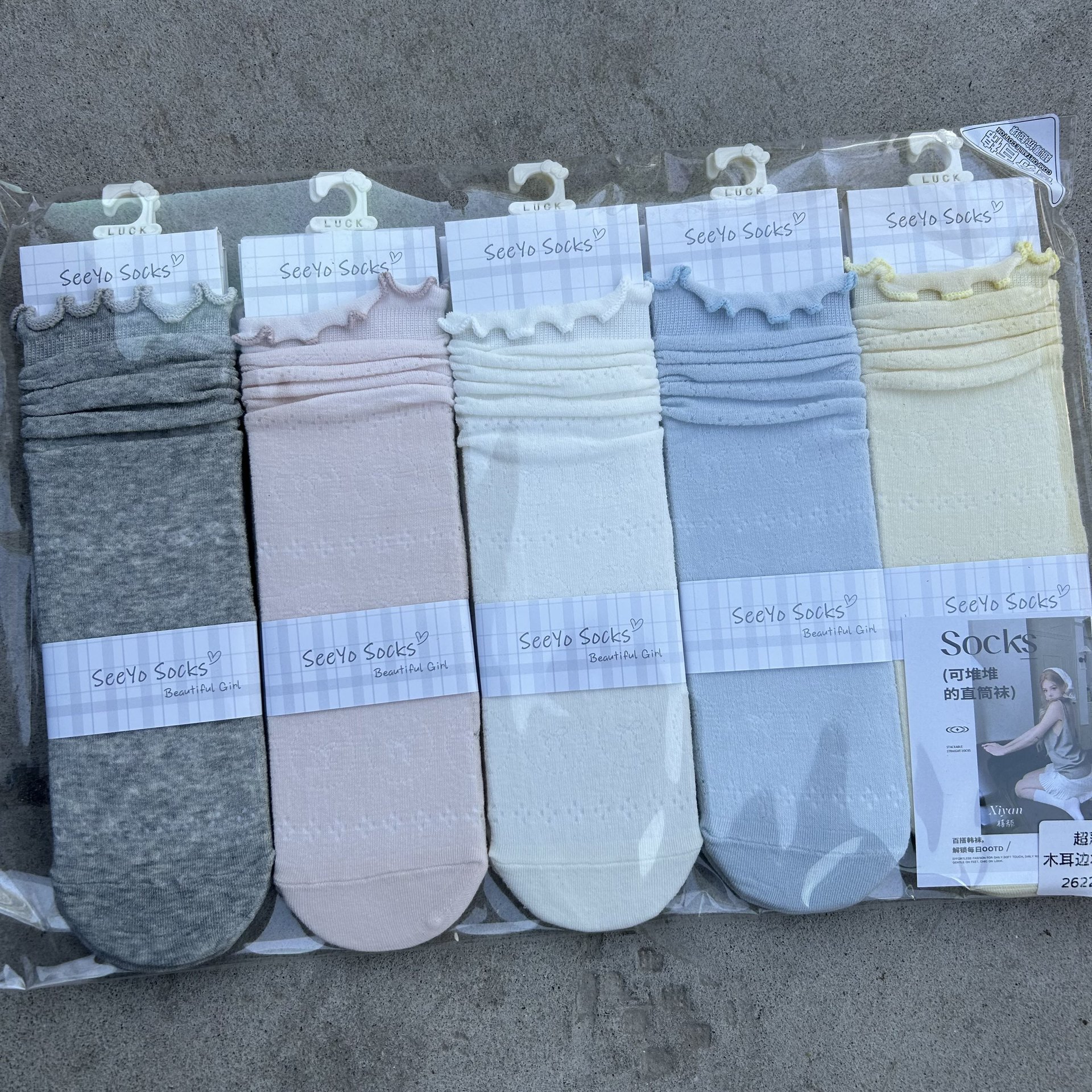 시옌 봄 여름 신상 여성용 파일드삭스 그레이 일본식/한국식 롱삭스 학생용 스트레이트 스타일 컬리지 스타일 단색 레이스스토어 가기