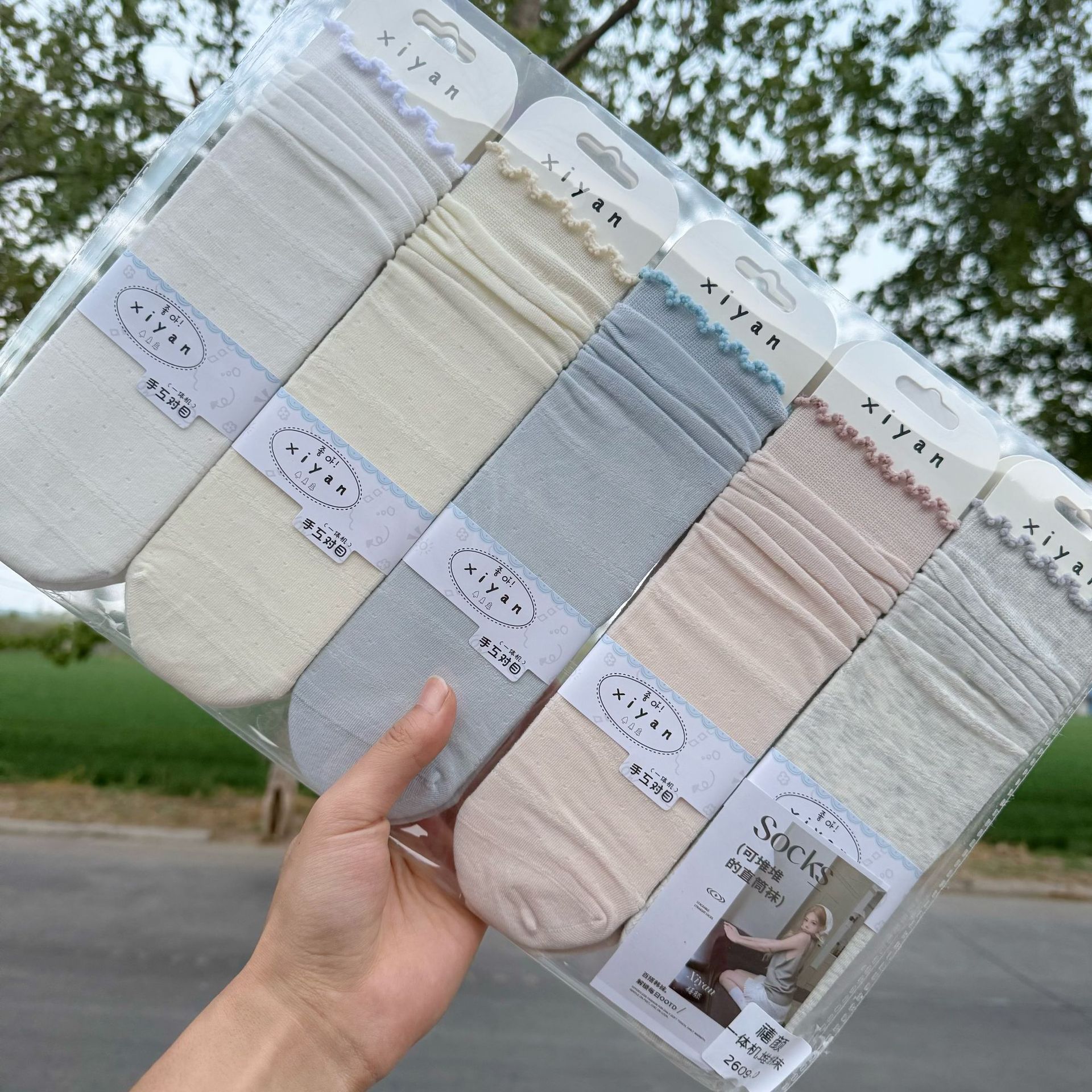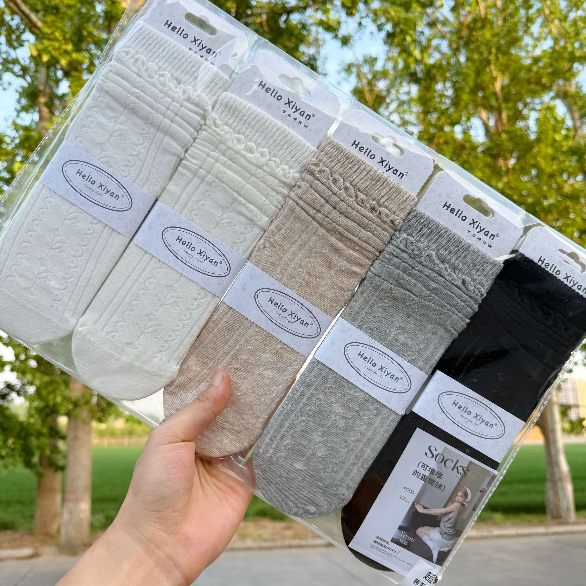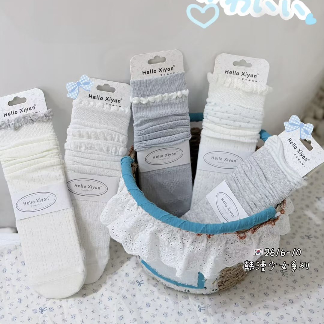 시옌 봄 여름 신상 여성용 파일드삭스 그레이 일본식/한국식 롱삭스 학생용 스트레이트 스타일 컬리지 스타일 단색 레이스