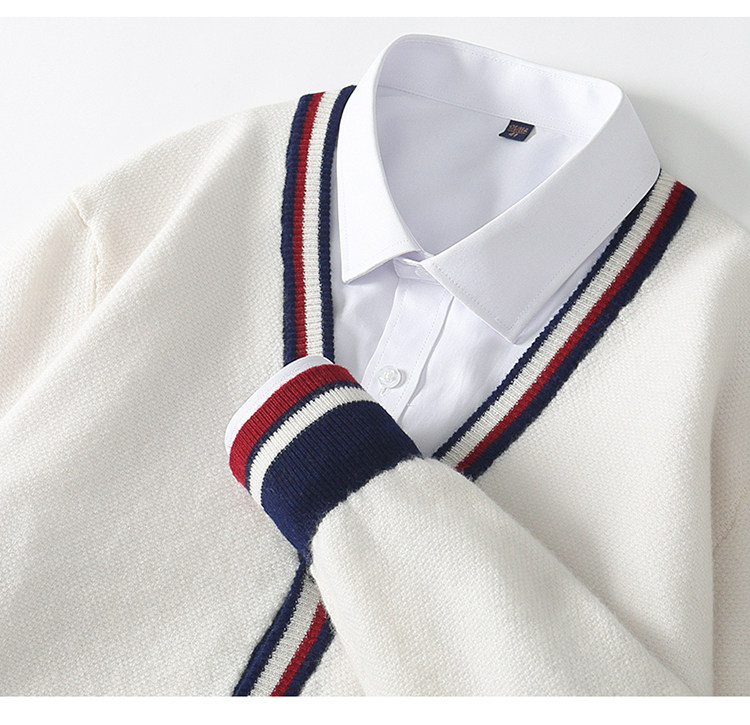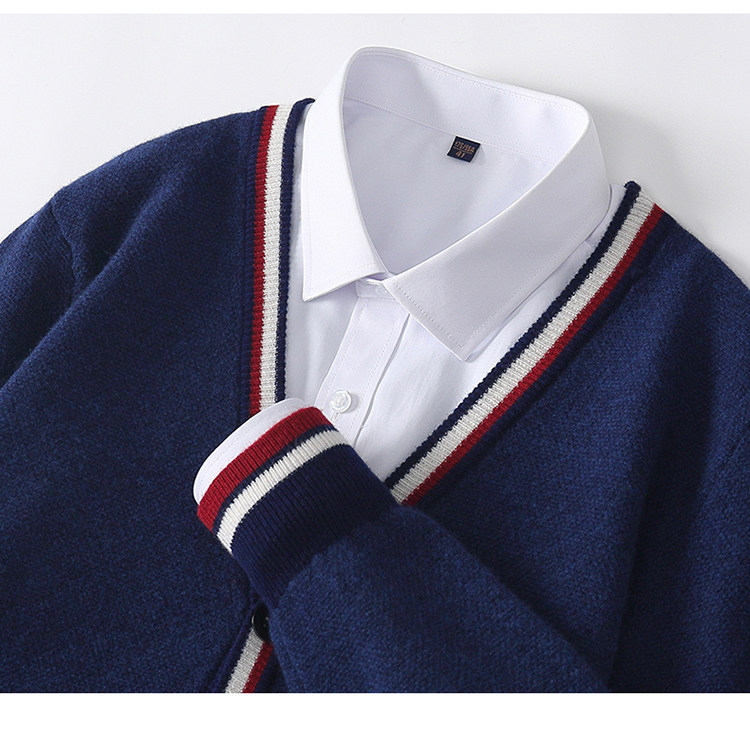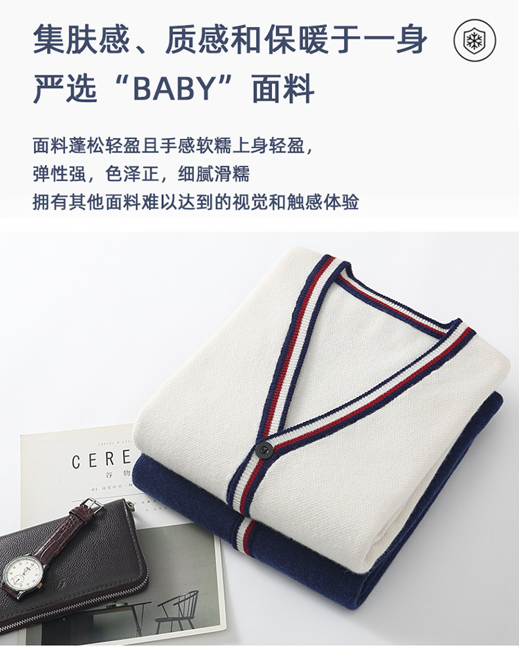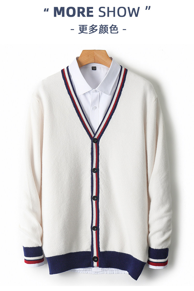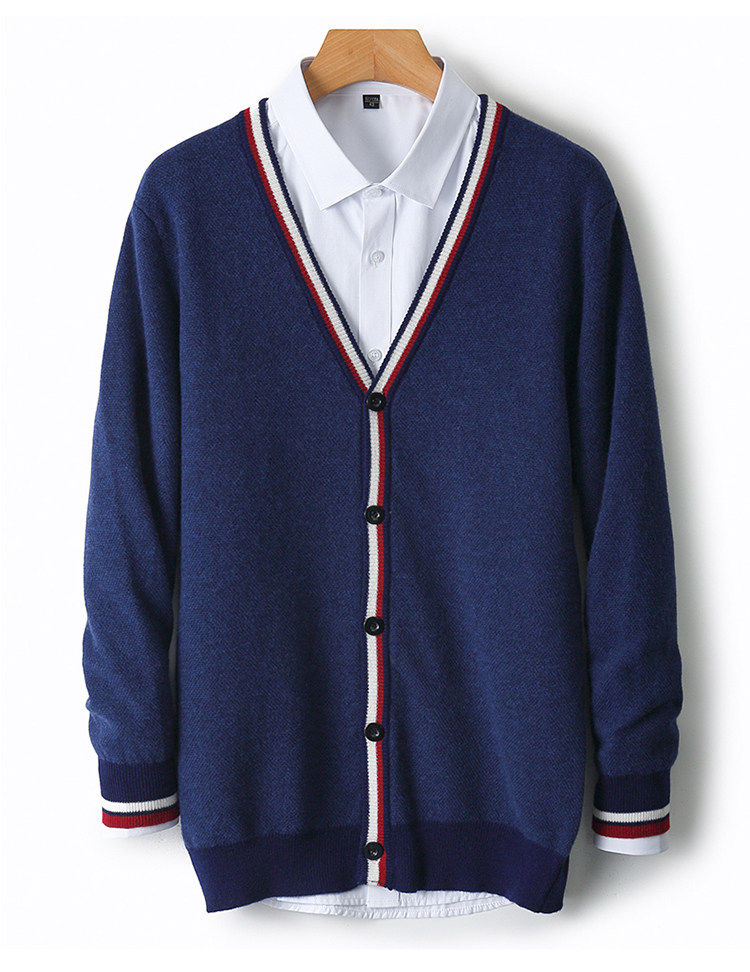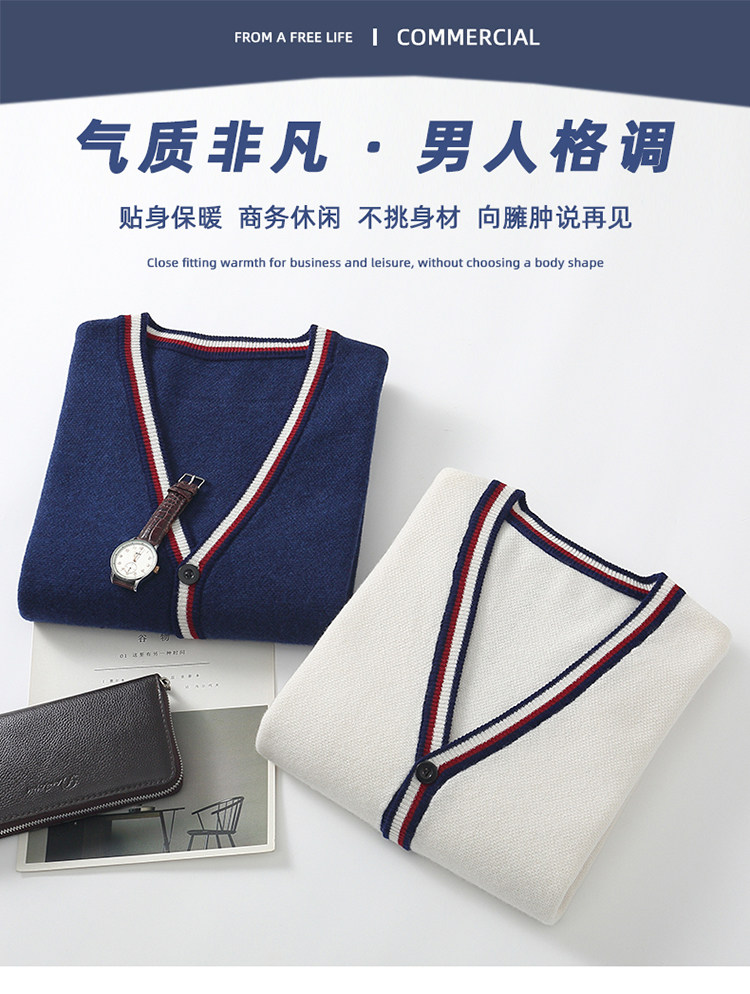 가을과 겨울 100 퓨어 울 가디건 남성용 V-넥 컬러 스트립 버튼 코트 스웨터 비즈니스 캐주얼 캐시미어 스웨터스토어 가기