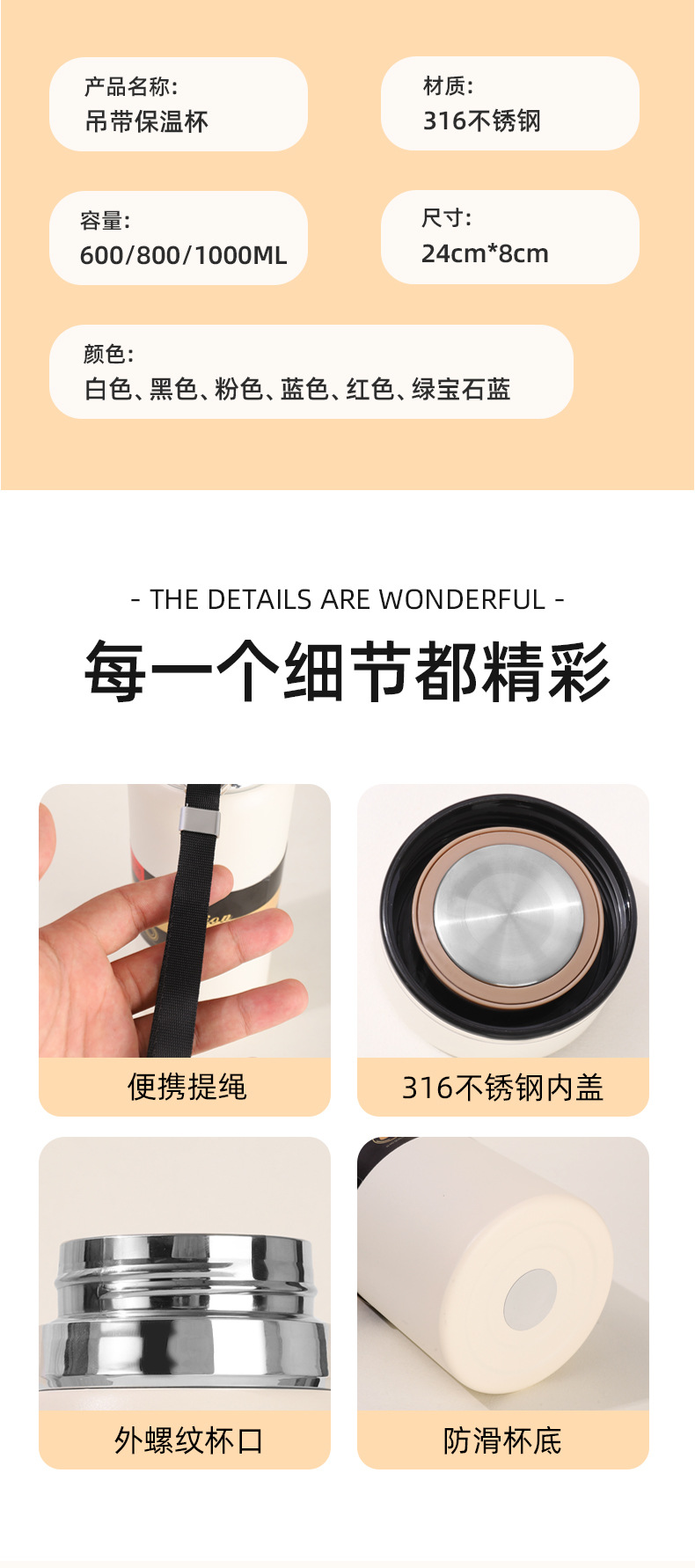 대용량 보온병 컵 316 스테인레스 스틸 보온병 컵 야외 휴대용 등산 여행 냄비 차 누출 차 컵