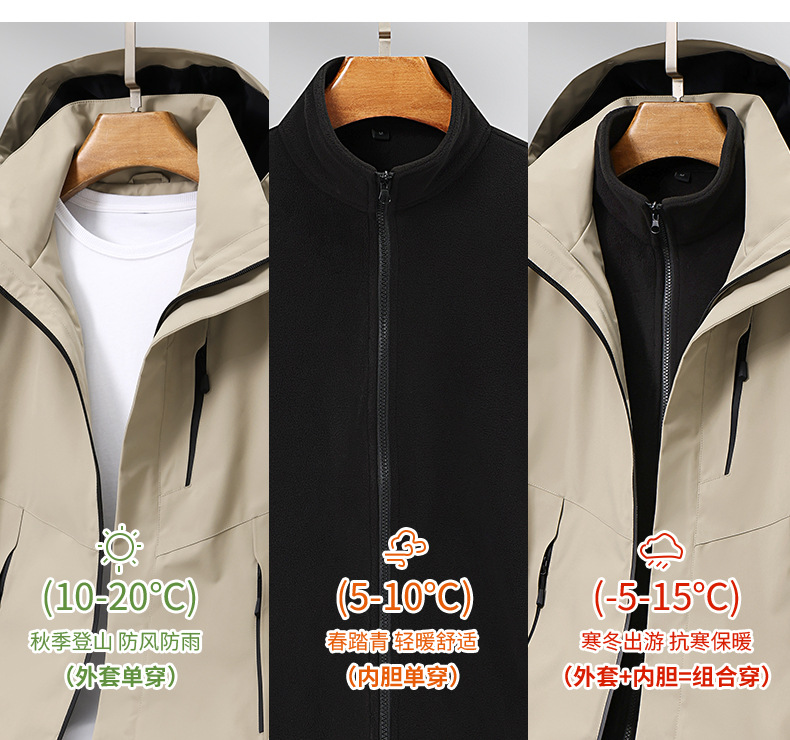 커플 가을과 겨울 러쉬 의류 여자의 2023 재킷 남자의 방풍 및 방수 3-in-1 분리형 야외 등산 세트스토어 가기