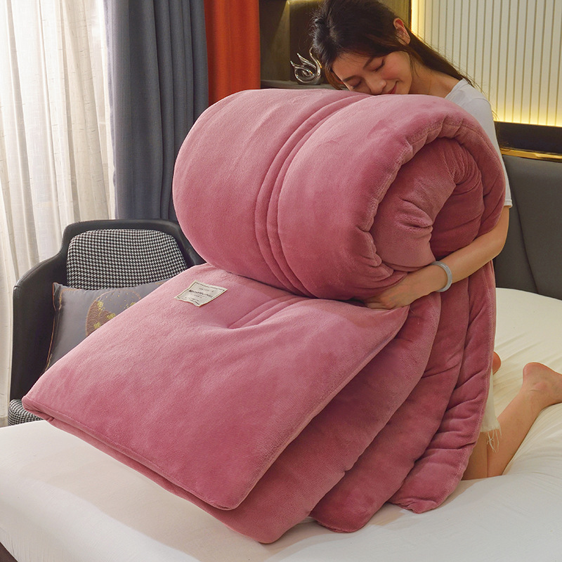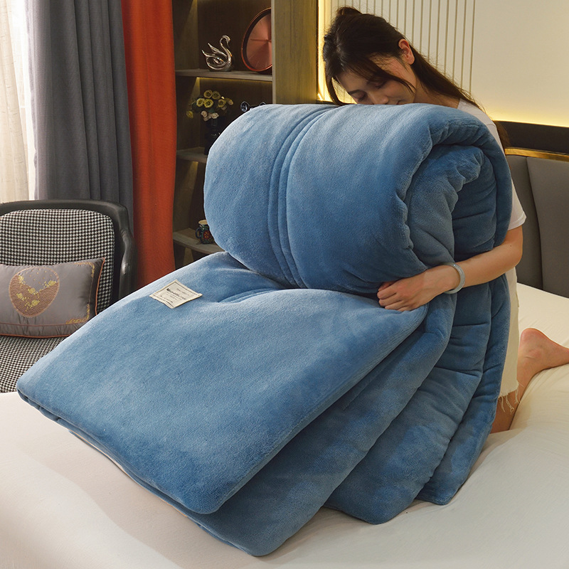 따뜻한 양털 겨울 이불 양면 두꺼운 밀크 벨벳 이불 학생 기숙사용 더블 사이즈 순색 이불 도매스토어 가기
