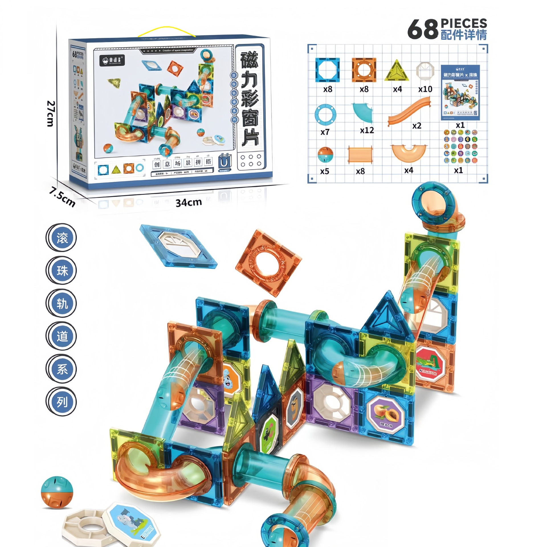 • 자석 컬러 창문 조각 68개