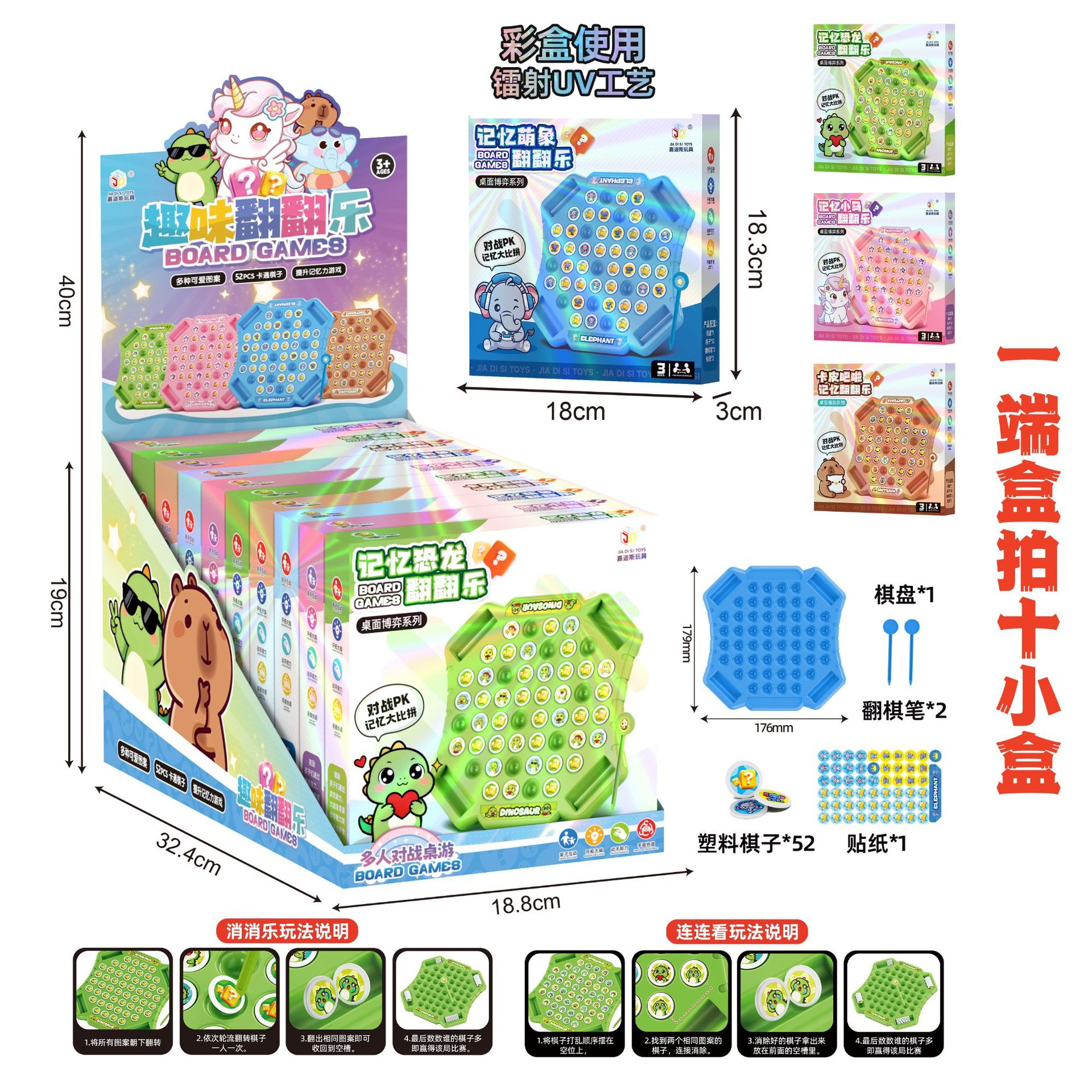 • 업그레이드된 카툰 메모리 플립 체스 52 그리드 [디스플레이 상자 1개에 10개]