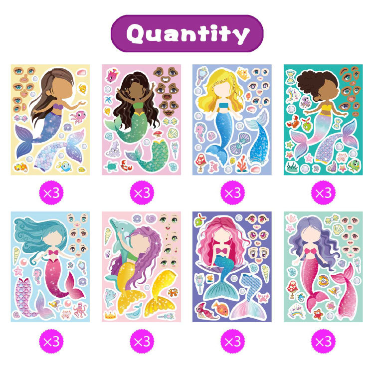 만화 인어 스티커 인어 파티 선물 스티커 나만의 인어 만들기