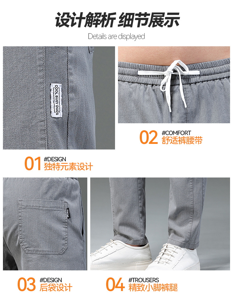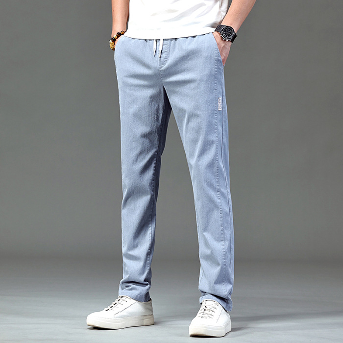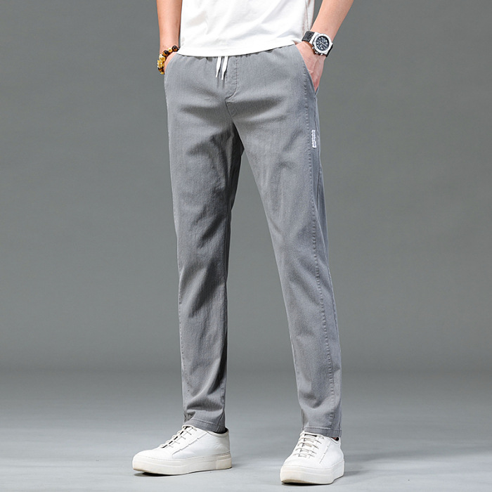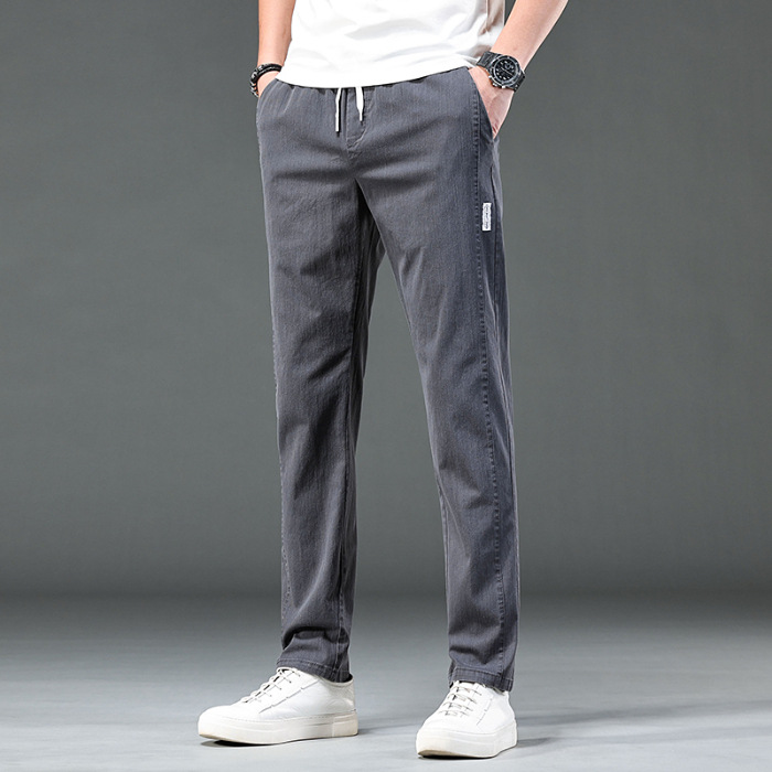 봄과 여름 2023 새로운 탄성 허리 탄성 캐주얼 바지 남성 스트레이트 한국 유행 흰색 바닥 긴 바지 남성 스트레이트 바지스토어 가기