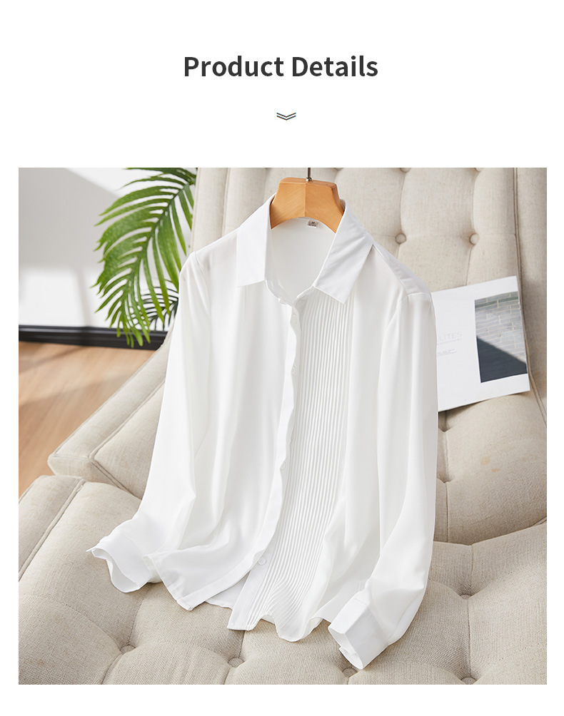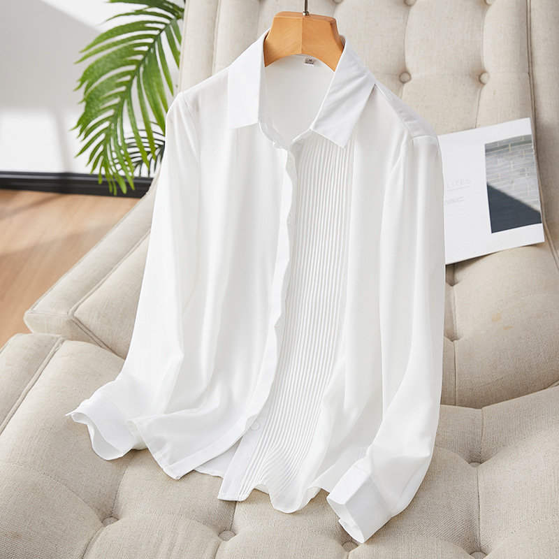 공장 직통 쉬폰 셔츠 여성 긴 소매 가을 뉴 심플 절묘한 통근 탑 디자인감 안감 화이트 셔츠