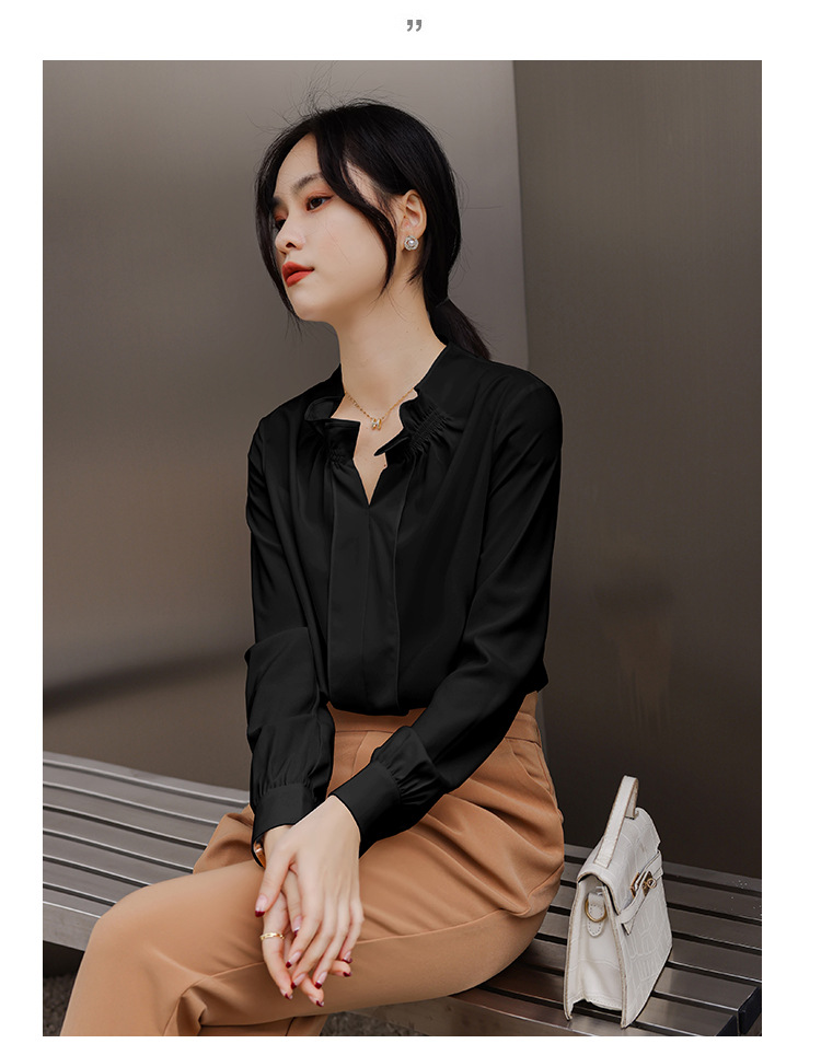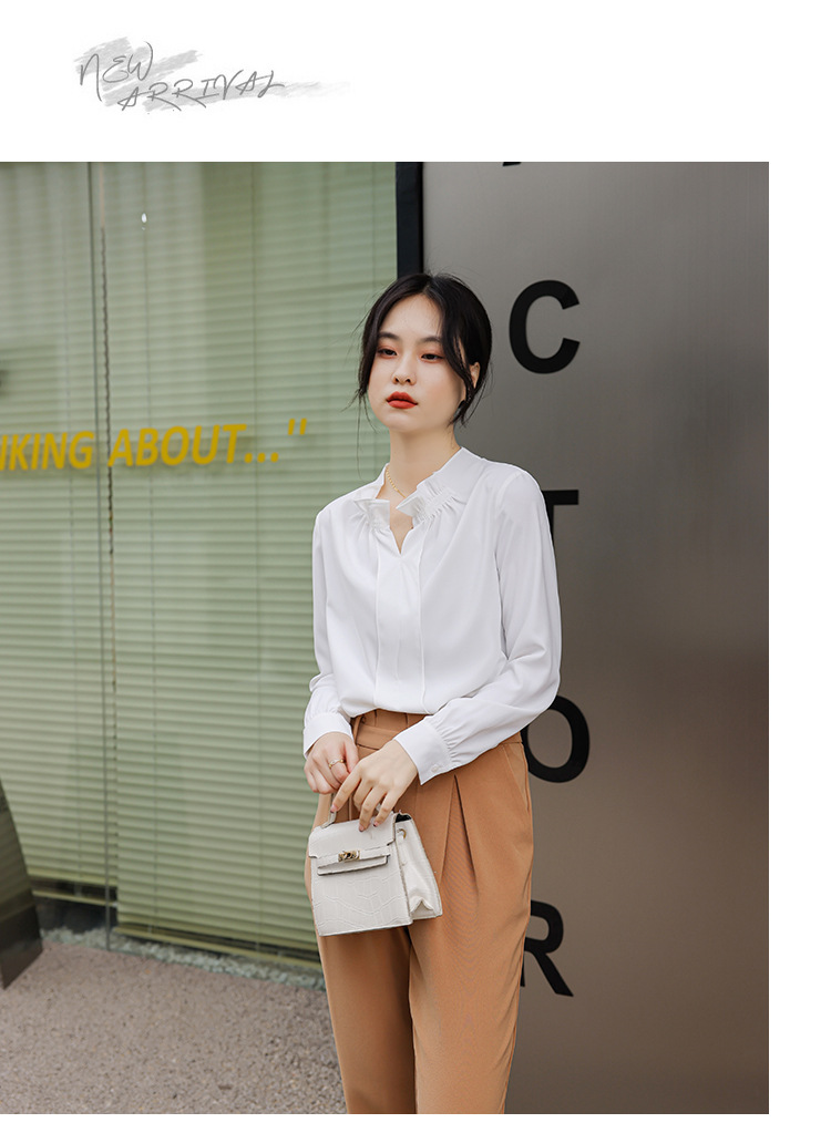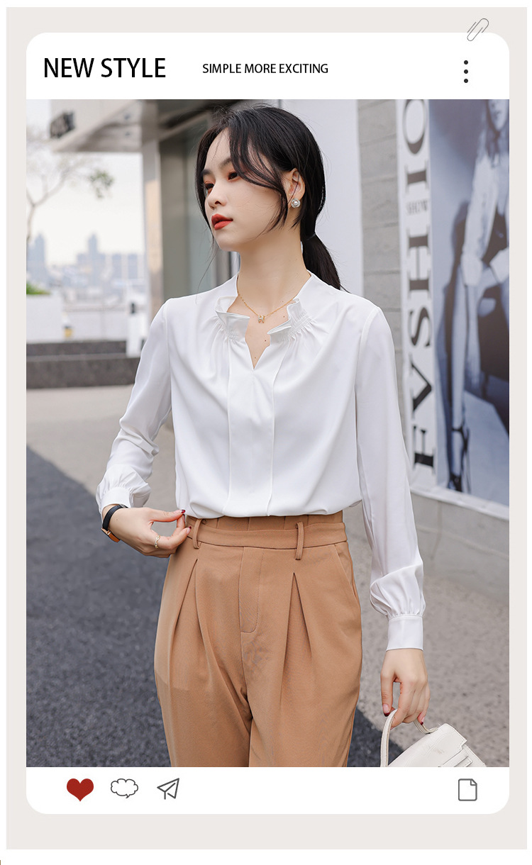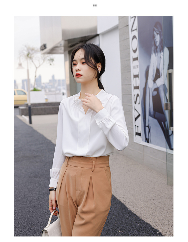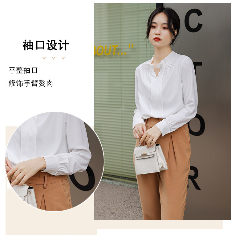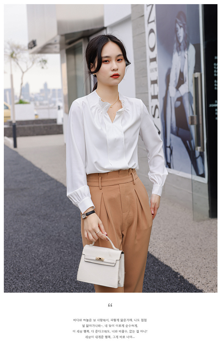 여성용 화이트 프렌치 셔츠 2025 봄 신작 긴팔 러플 브이넥 슬림 쉬폰 탑 하프 오픈 칼라스토어 가기