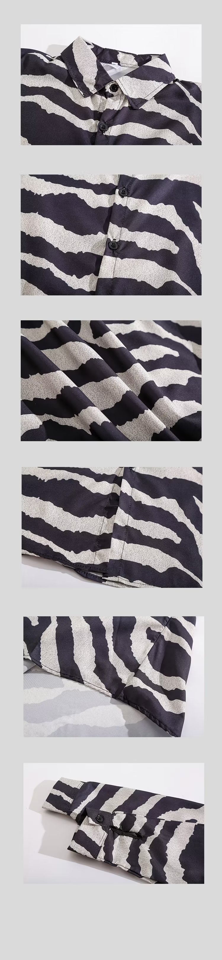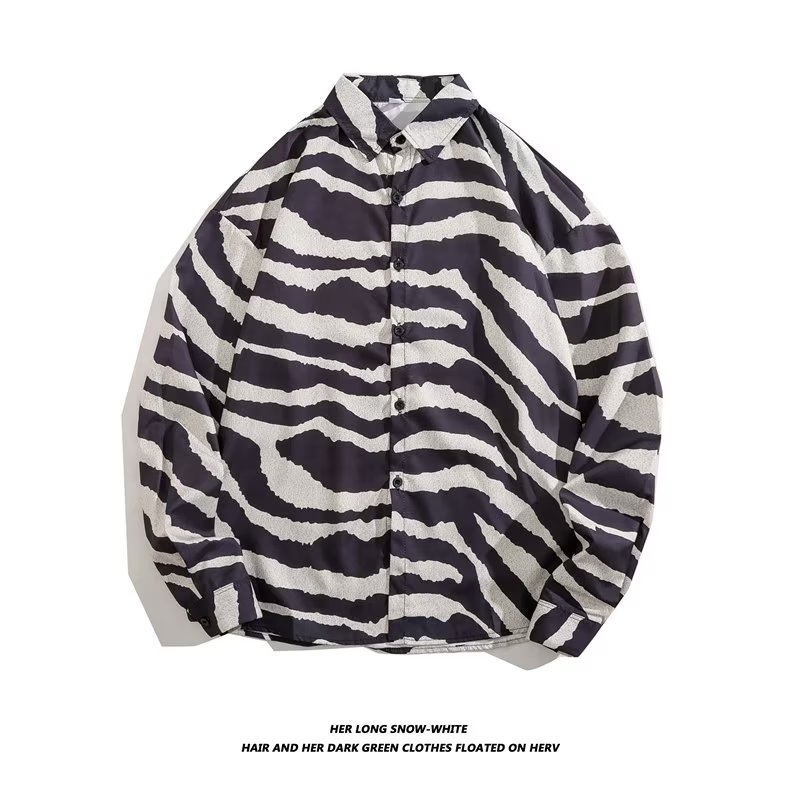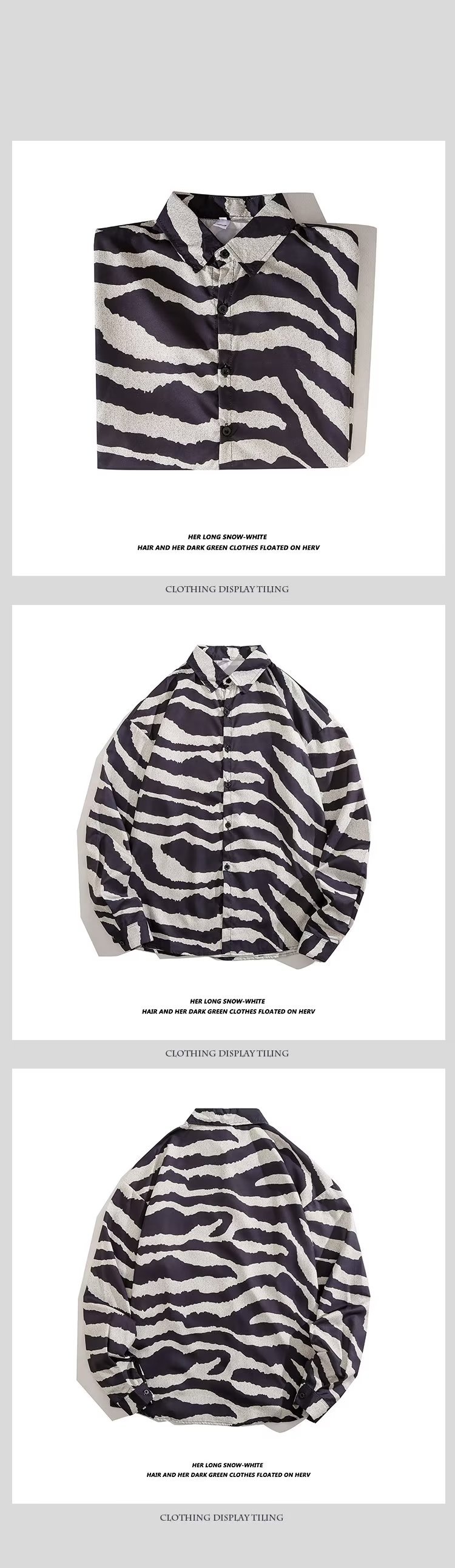 일본식 시체 잘 생긴 얼룩말 프린트 셔츠 남자의 가을 한국 스타일 유행 긴 소매 셔츠 느슨한 고급 캐주얼 재킷 유행