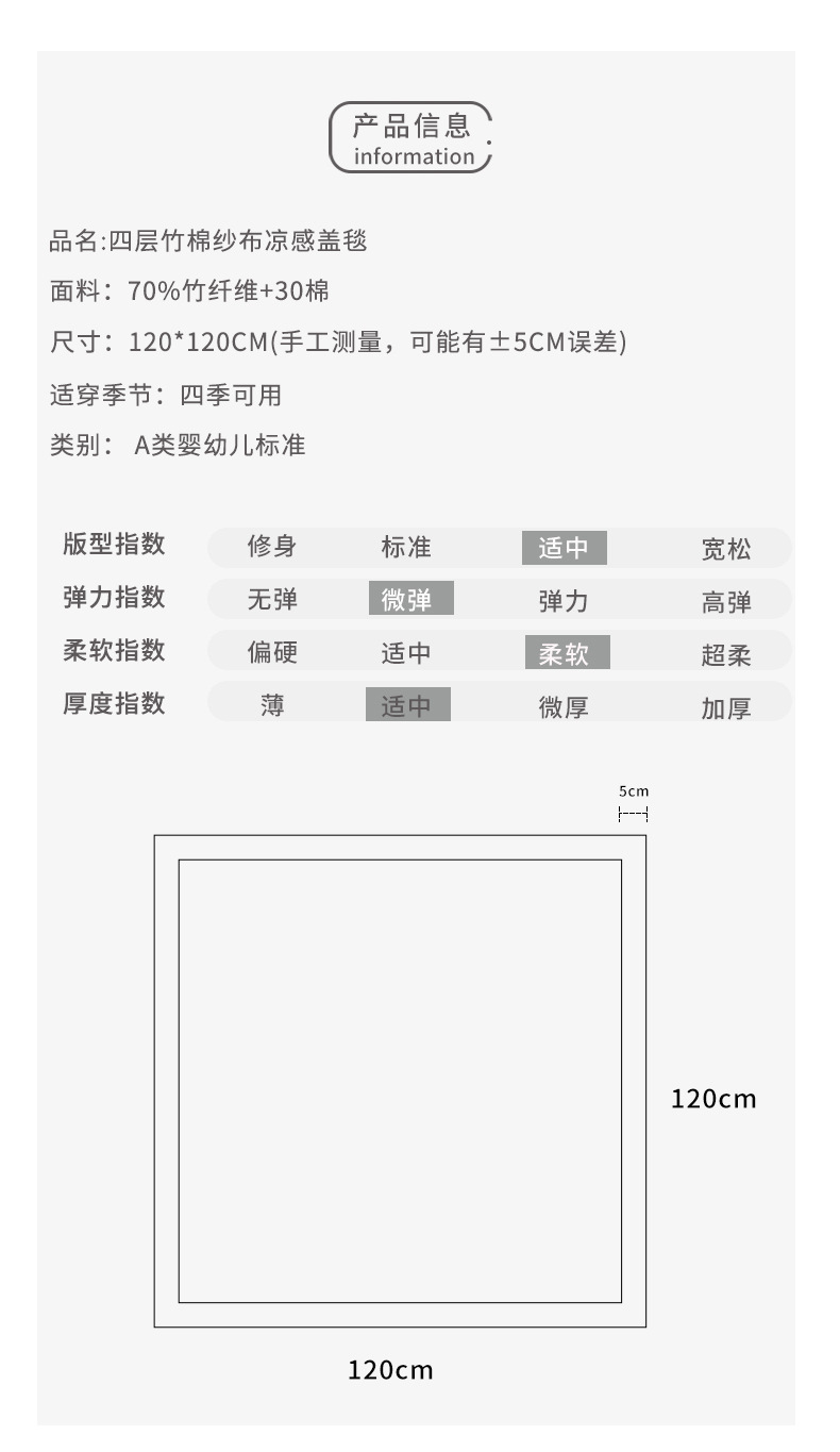 • 대나무 목화 거즈 4 층 (120*120cm)