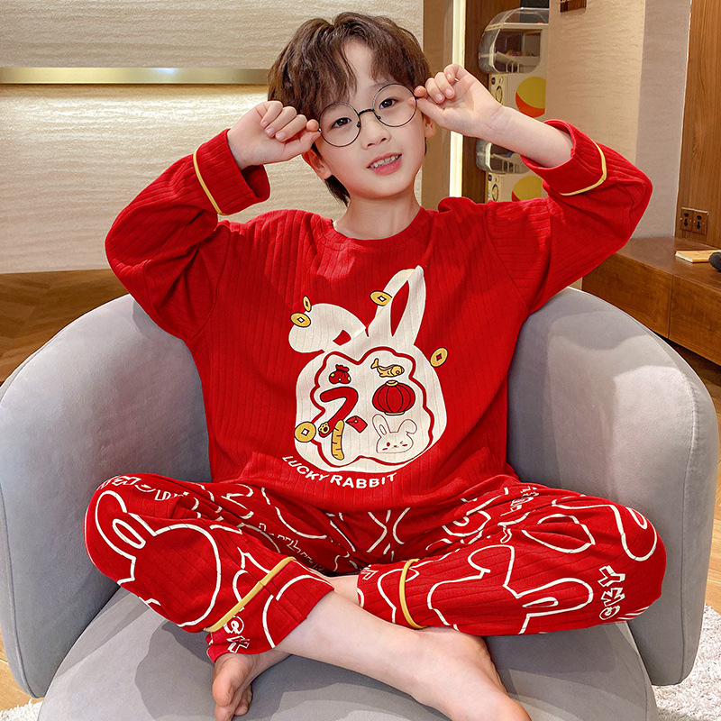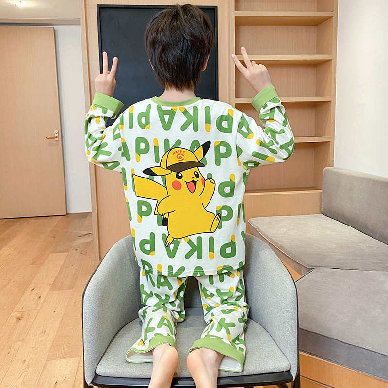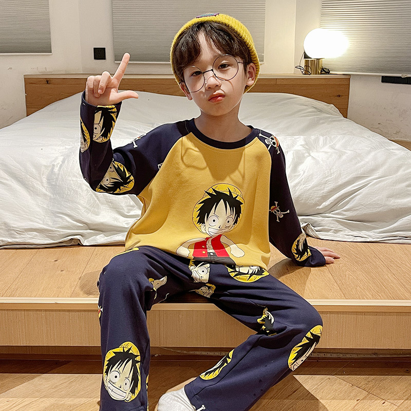 소년 잠옷 봄과 가을 순수 면화 긴팔 아기 만화 중대형 어린이 가을, 겨울 어린 소년 면화 가정 의류 세트