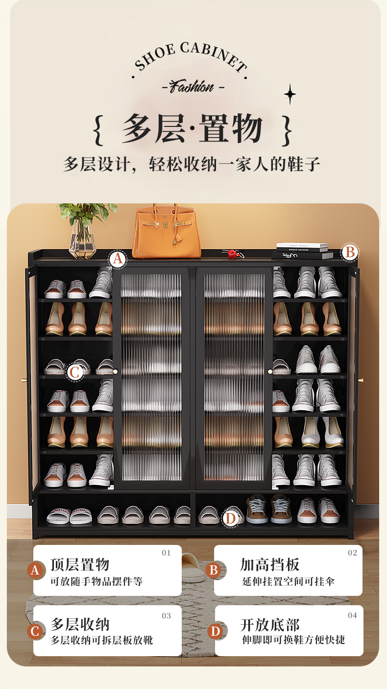 검은 신발 캐비닛 홈 도어 공간 절약 신발 랙 간단한 다층 아름다운 간단한 신발 랙 보관 유물 기숙사