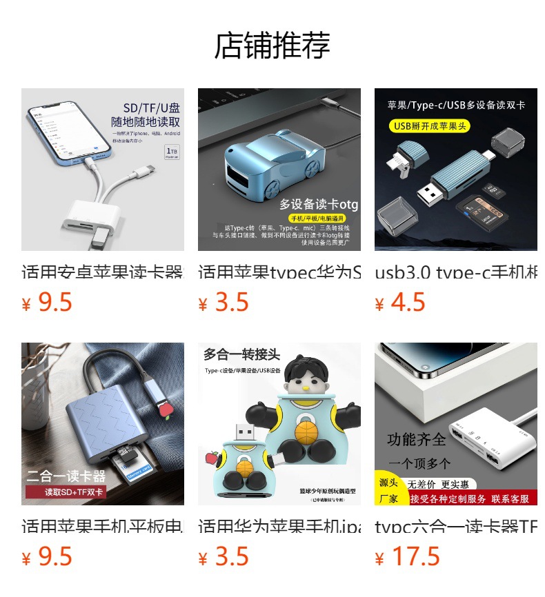 • Typec four-in-one (듀얼 카드 + 충전 + otg)