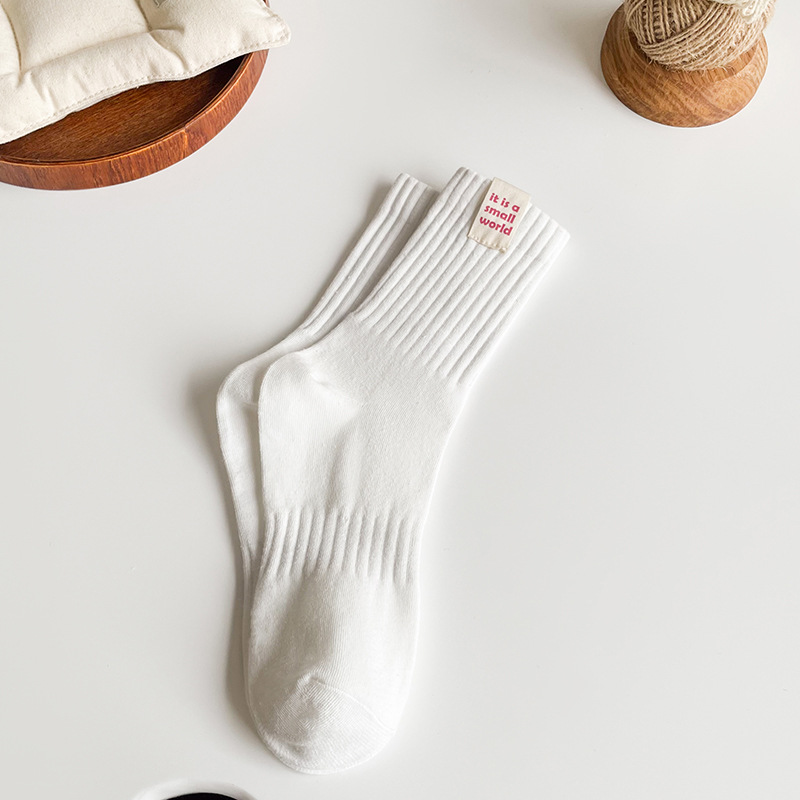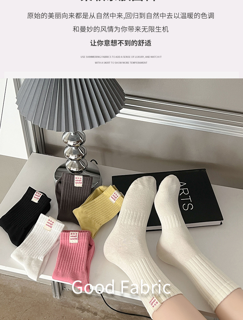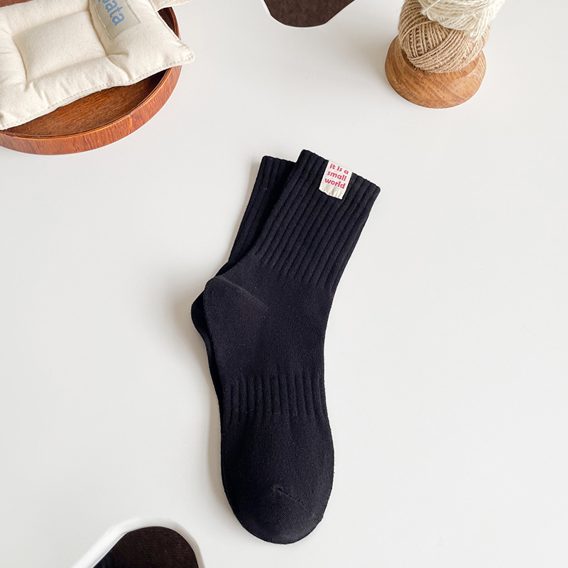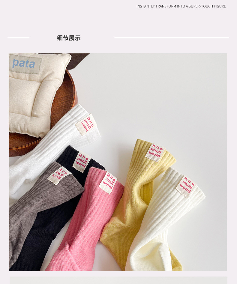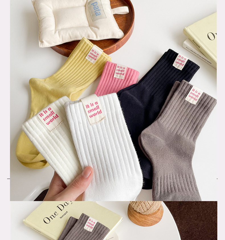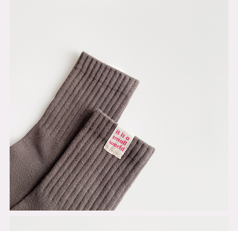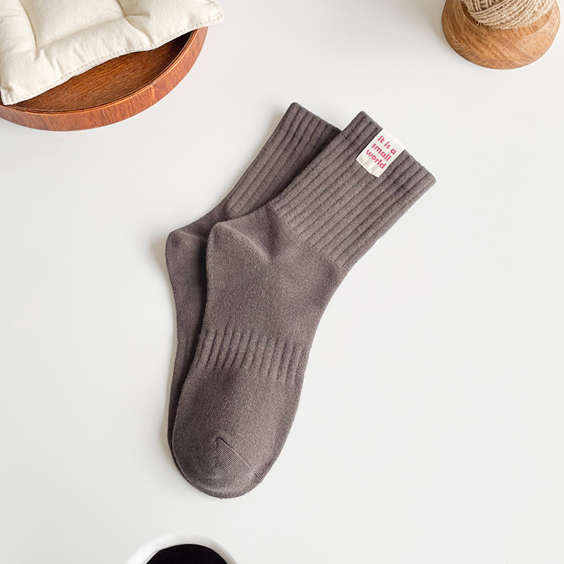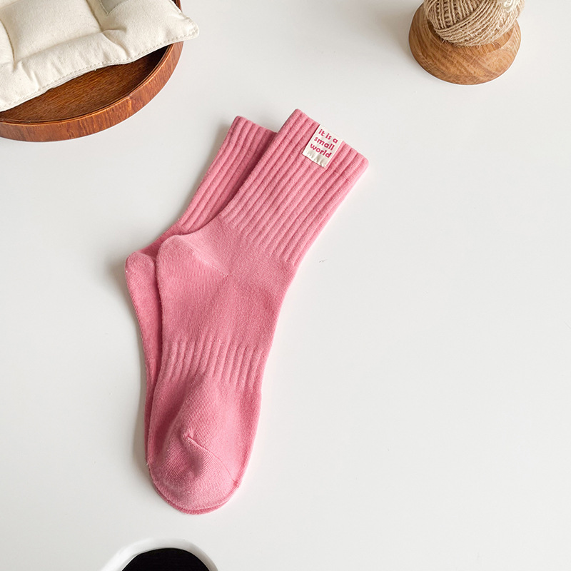 가을 새로운 단색 편지 천 라벨 양말 유행 일본식 캔디 컬러 면 중간 길이 양말 스포츠 스타킹