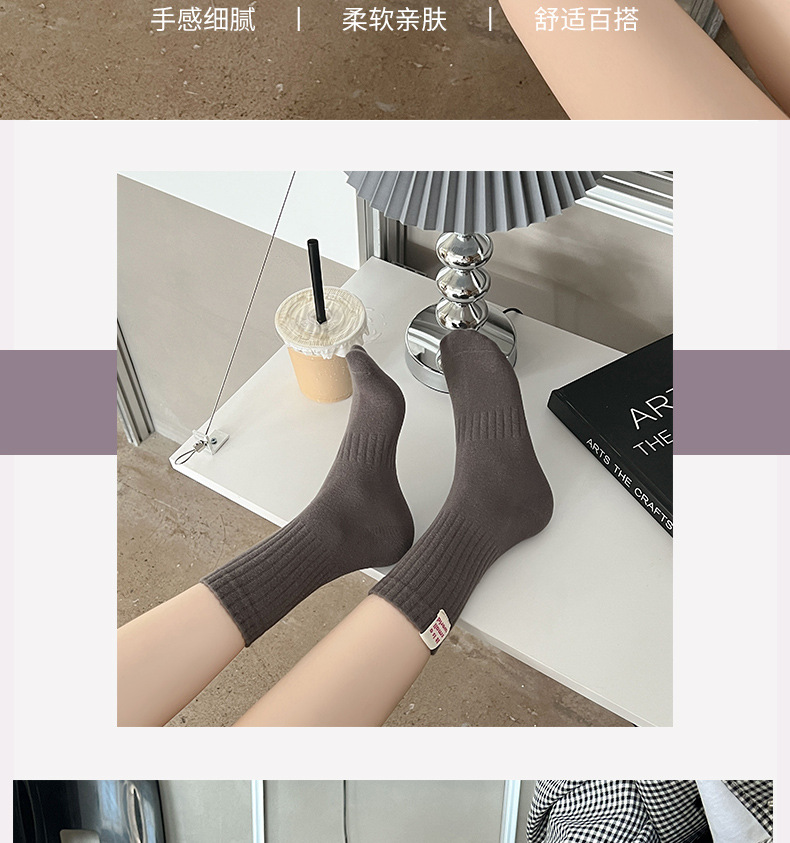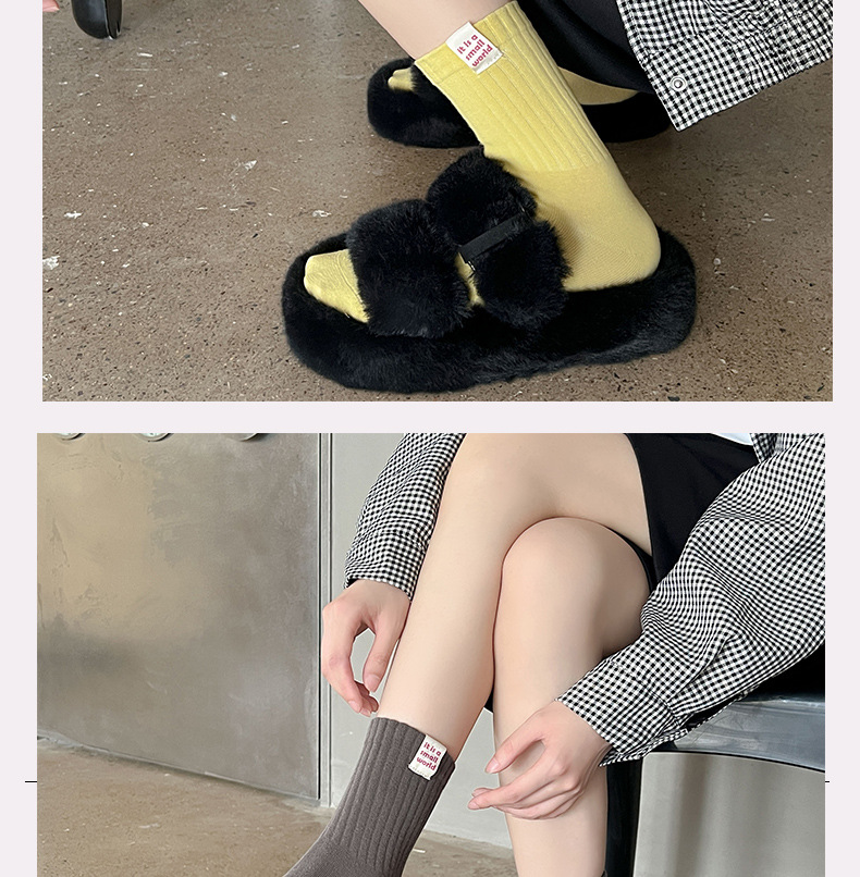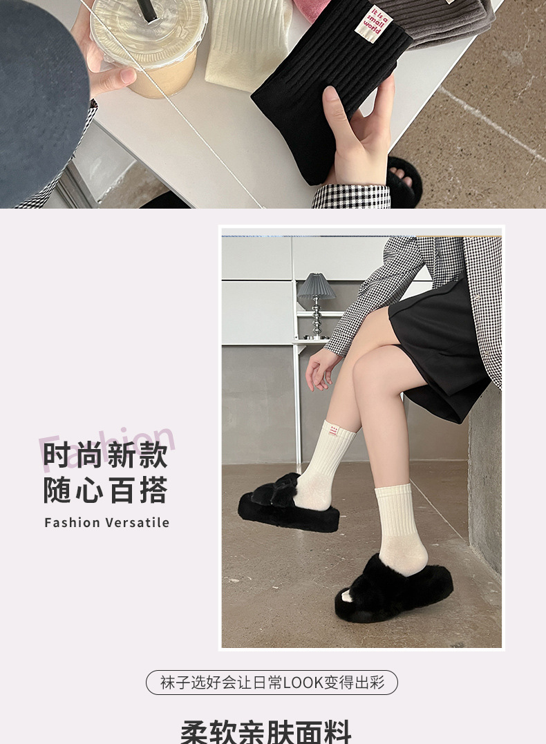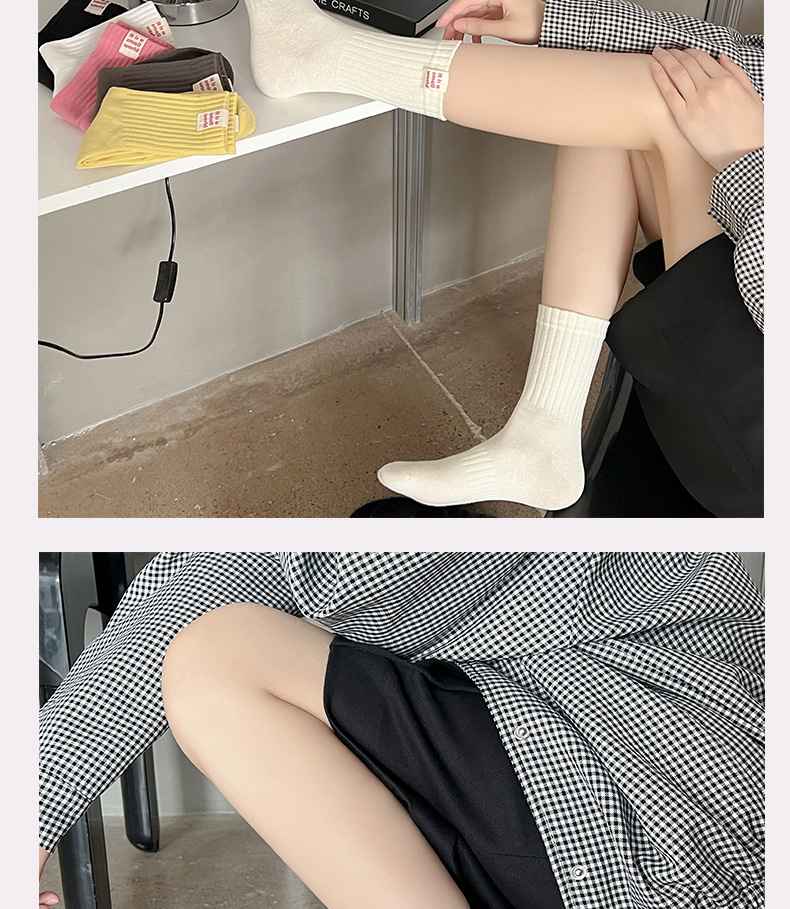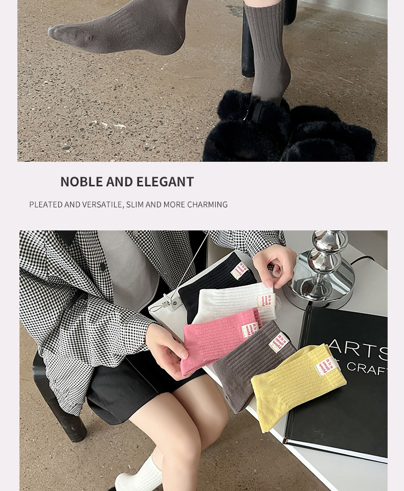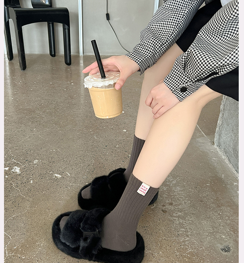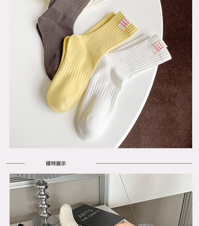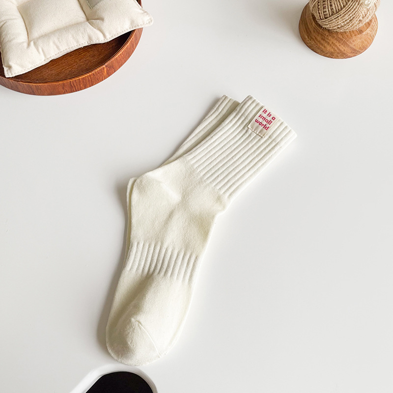 가을 새로운 단색 편지 천 라벨 양말 유행 일본식 캔디 컬러 면 중간 길이 양말 스포츠 스타킹
