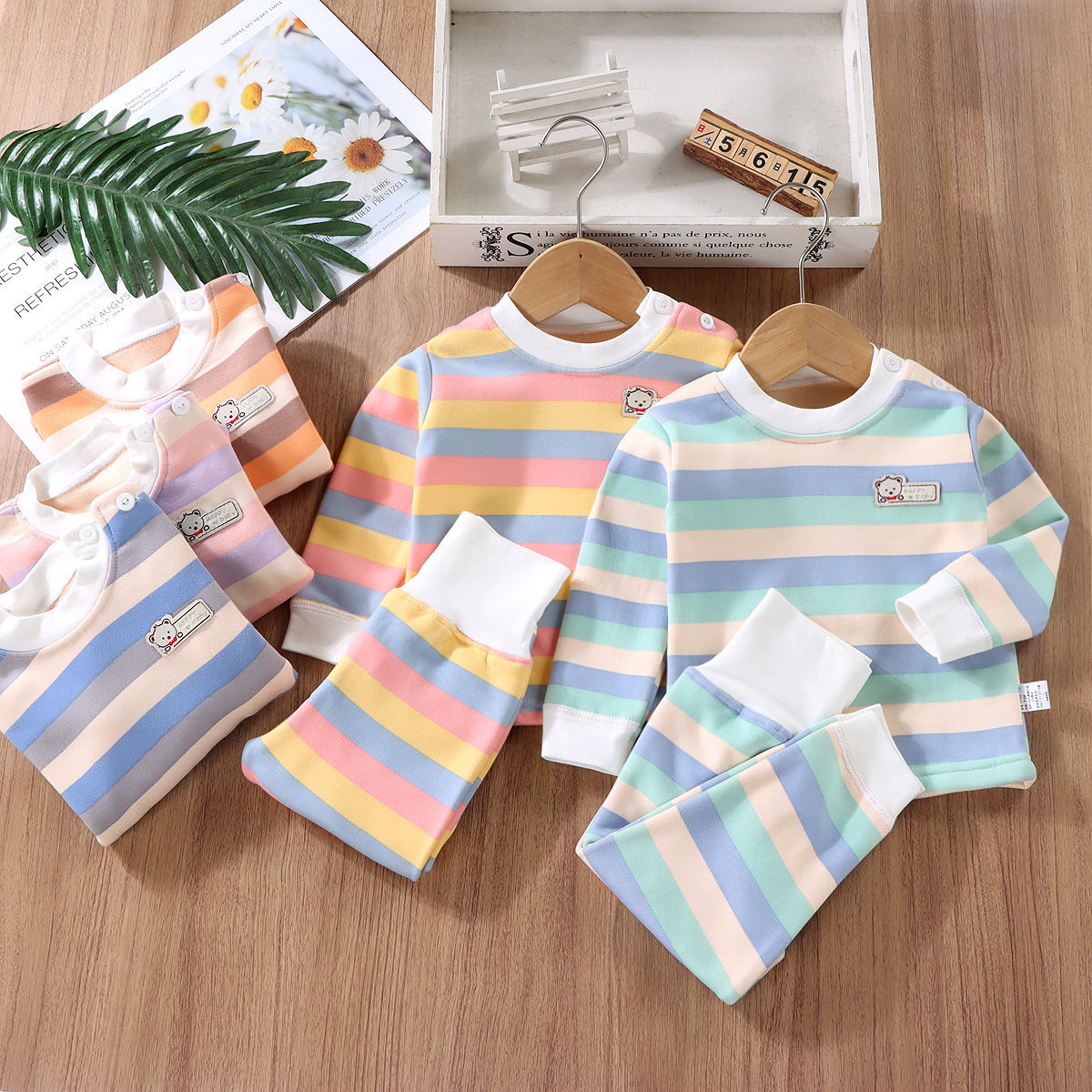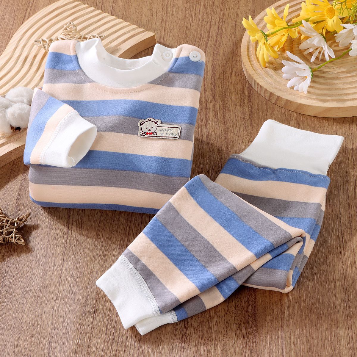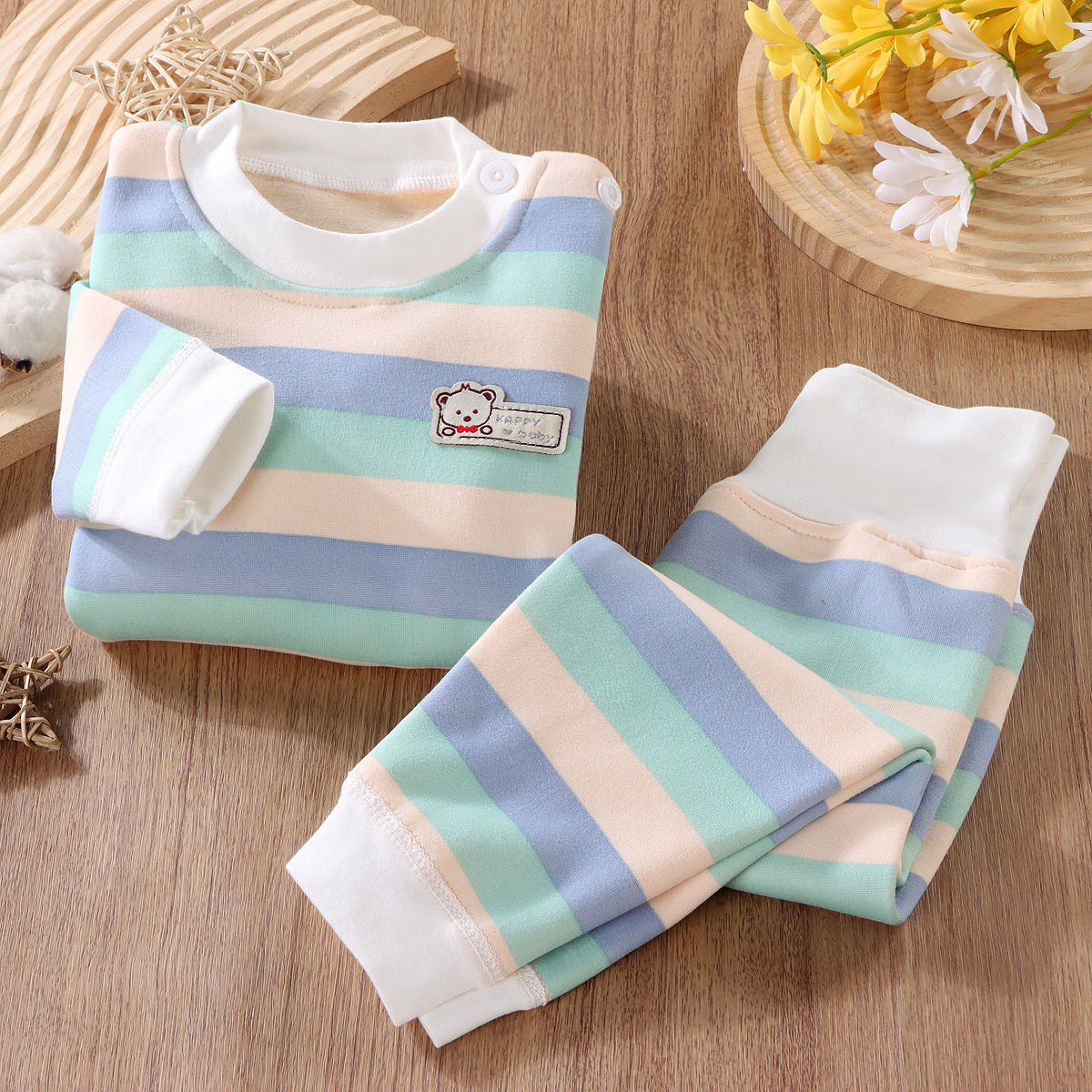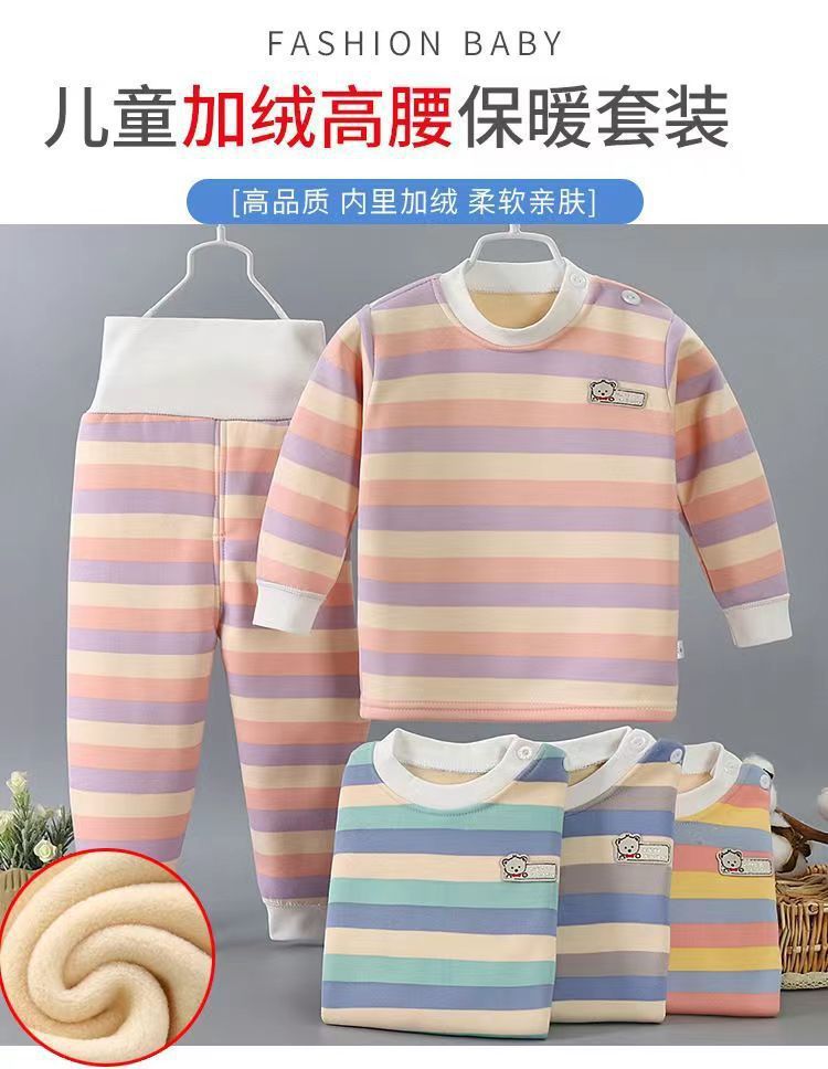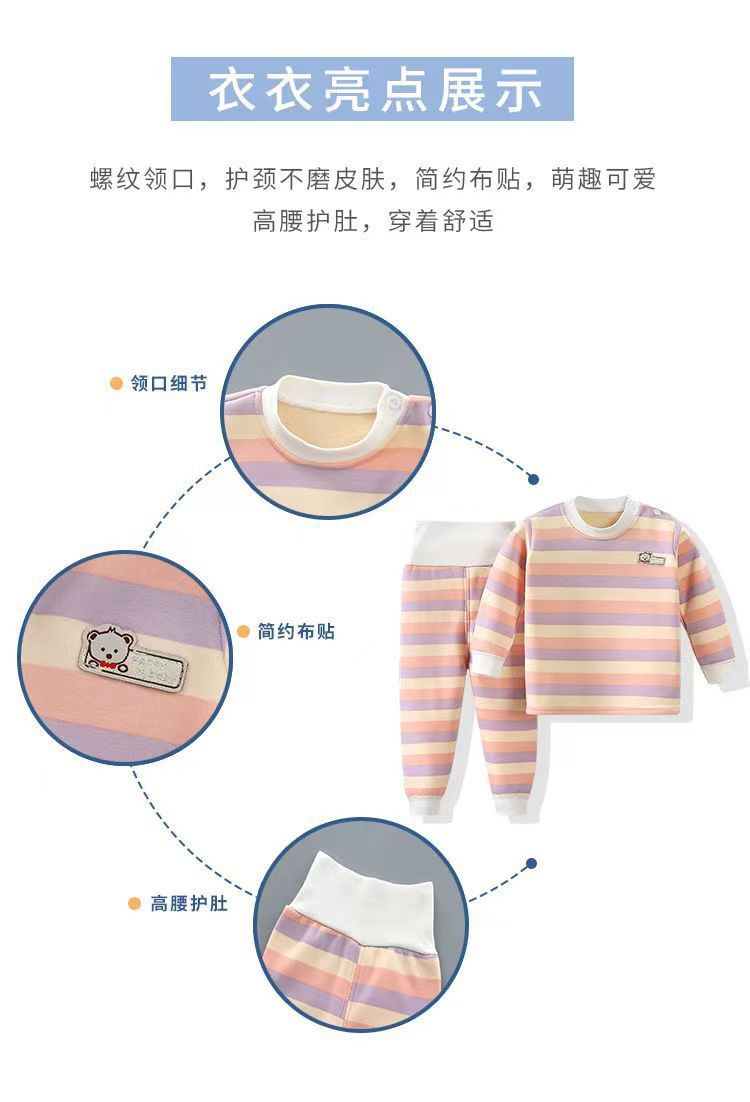 어린이 열 속옷 세트 기모 두꺼운 가을 옷 가을 바지 줄무늬 가을과 겨울 옷 소년 가정복 아기스토어 가기