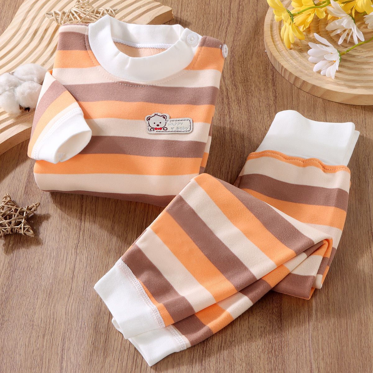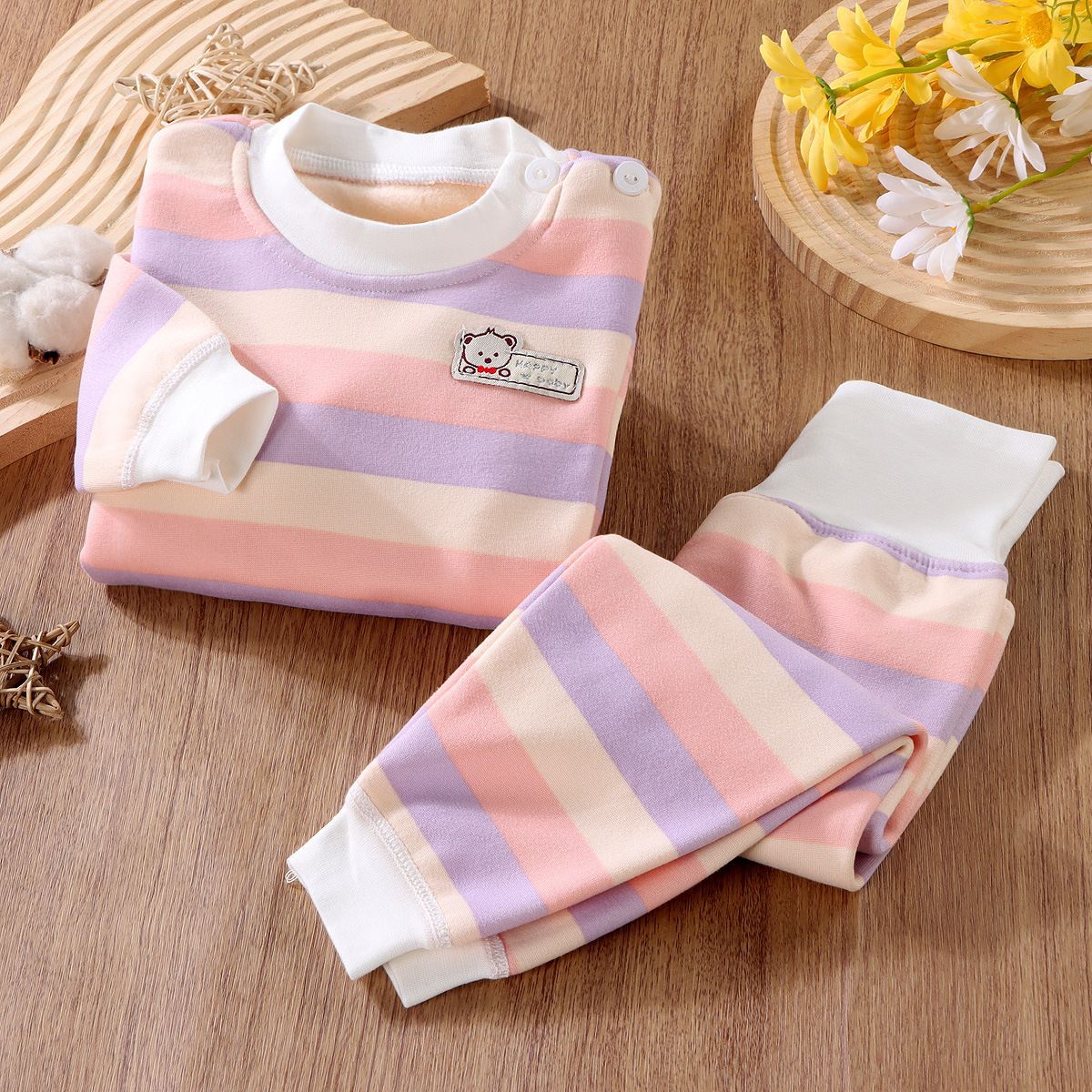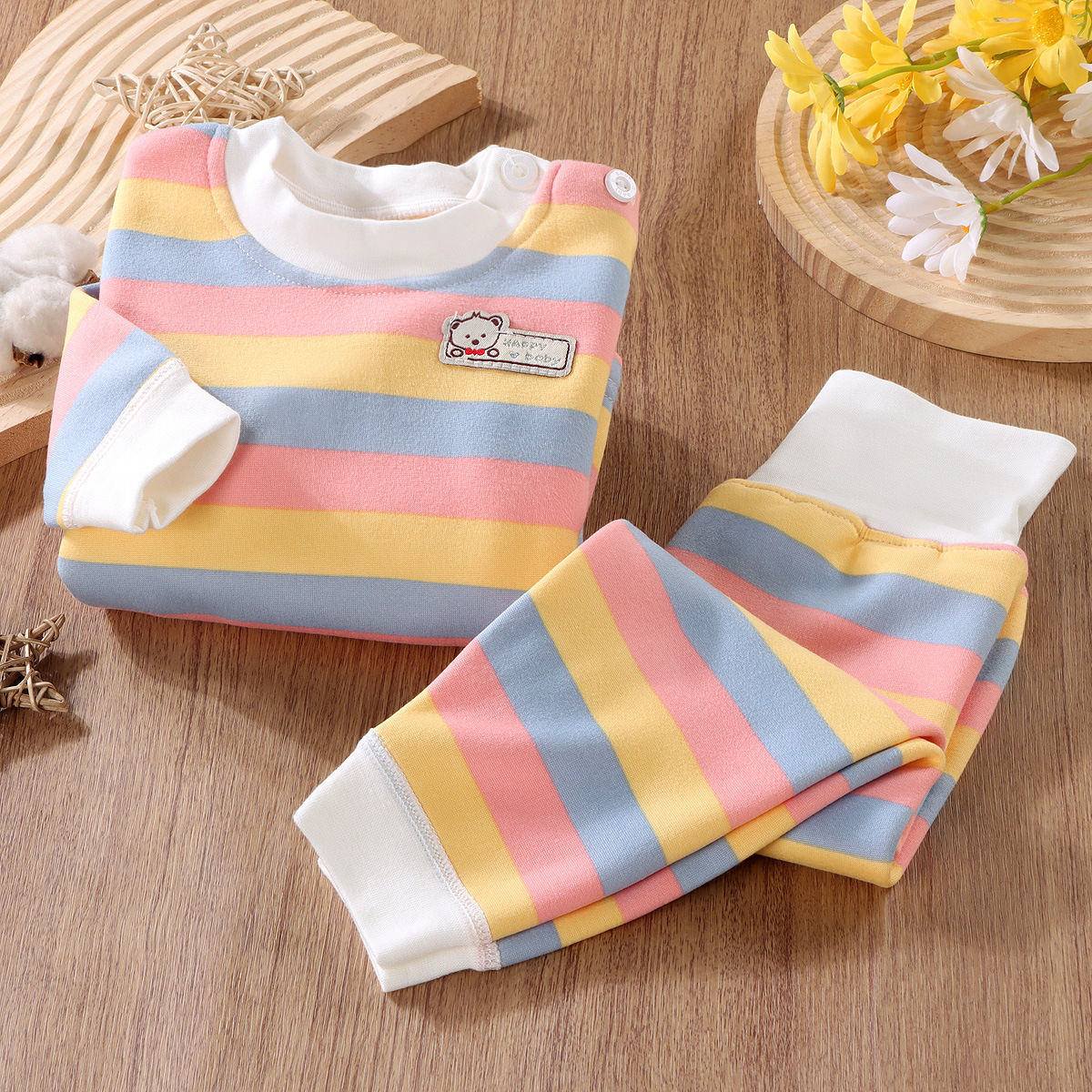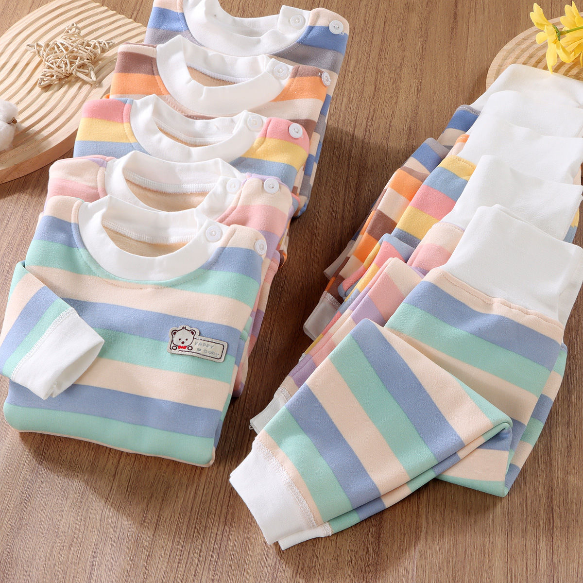 어린이 열 속옷 세트 기모 두꺼운 가을 옷 가을 바지 줄무늬 가을과 겨울 옷 소년 가정복 아기스토어 가기