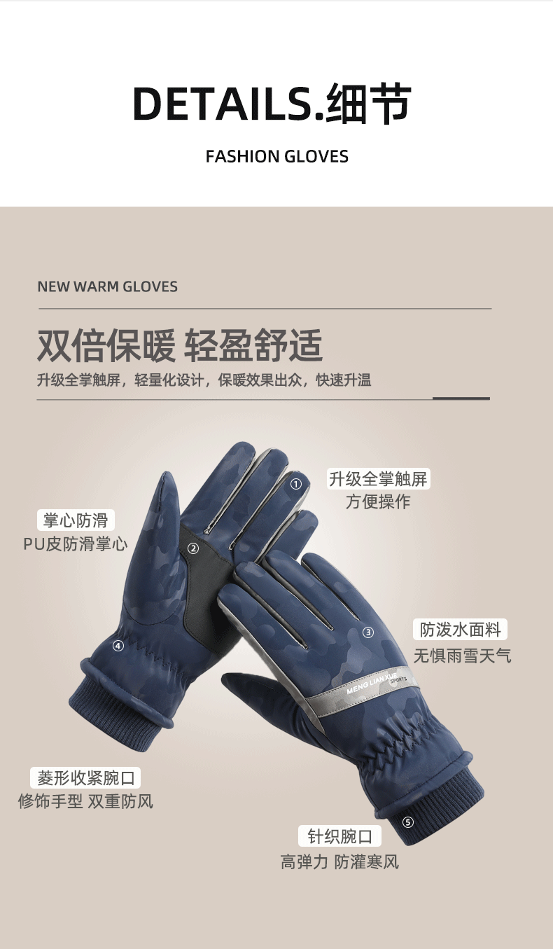 야외 겨울 따뜻한 장갑 남성 승마 미끄럼 방지 터치 스크린 패딩 방수 스키 장갑 제조 업체 도매 New스토어 가기