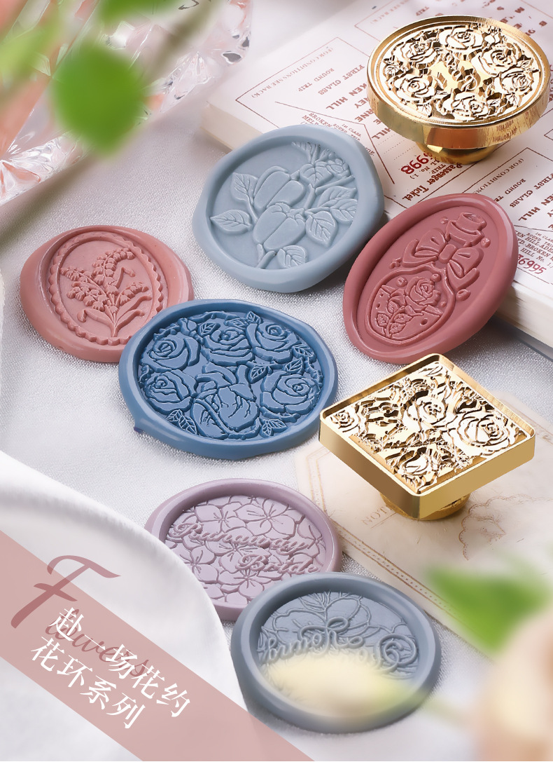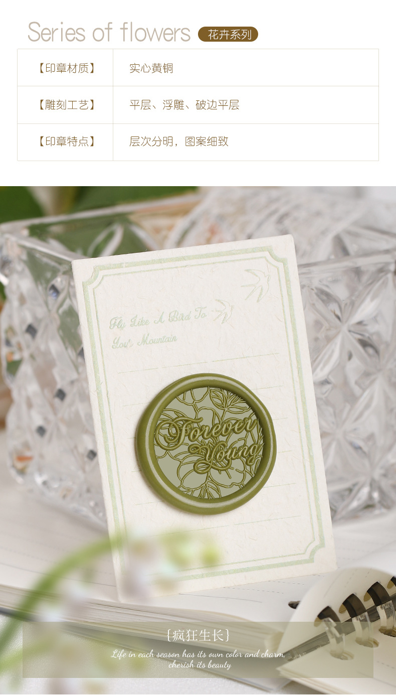 新品 浮雕植物花朵系列 火漆印章章头 玫瑰蒲公英郁金香手账铜头