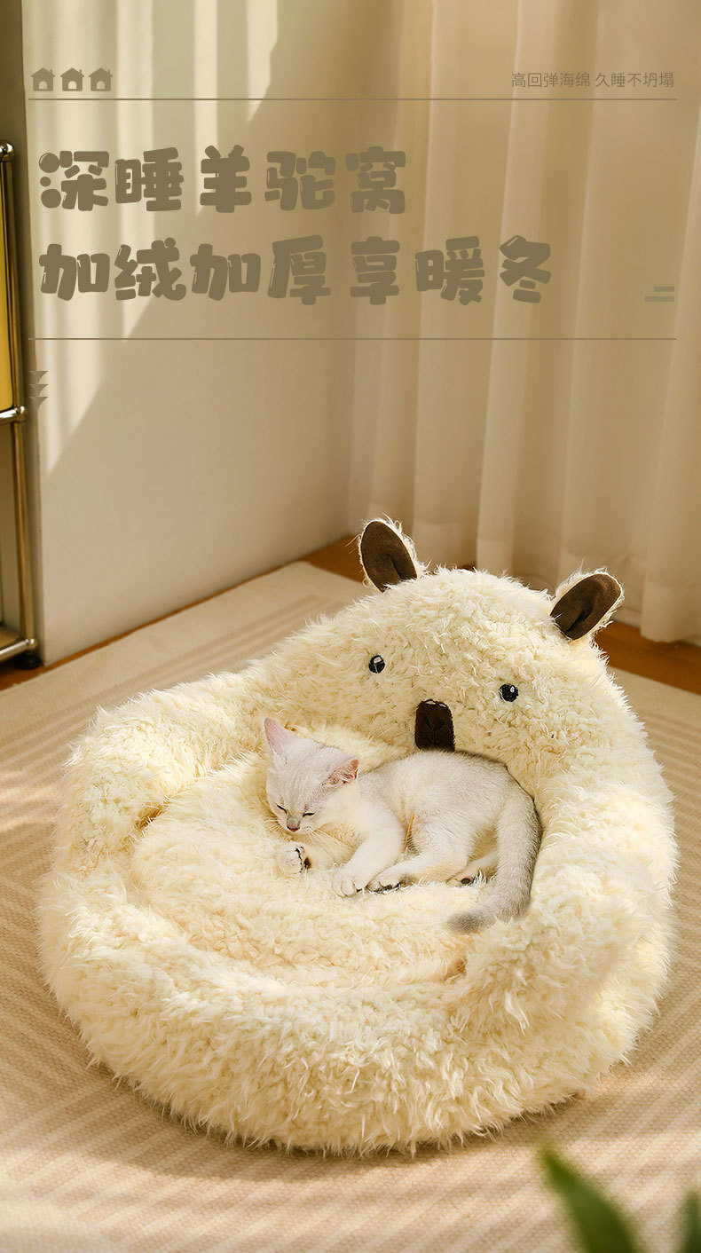 새로운 알파카 고양이 둥지 겨울 따뜻한 개 둥지 깊은 수면 고양이 둥지 애완 동물 용품 고양이 소파 국경 도매스토어 가기