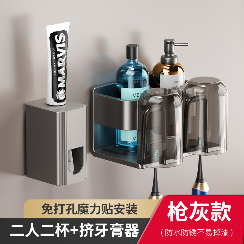 공간 알루미늄 칫솔 보관 랙 펀치 프리 구강 세척제 컵 브래킷 욕실 벽걸이 형 치약 압착기 랙