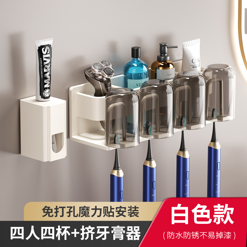 • 흰색 4 분 4 컵 칫솔 홀더 포함