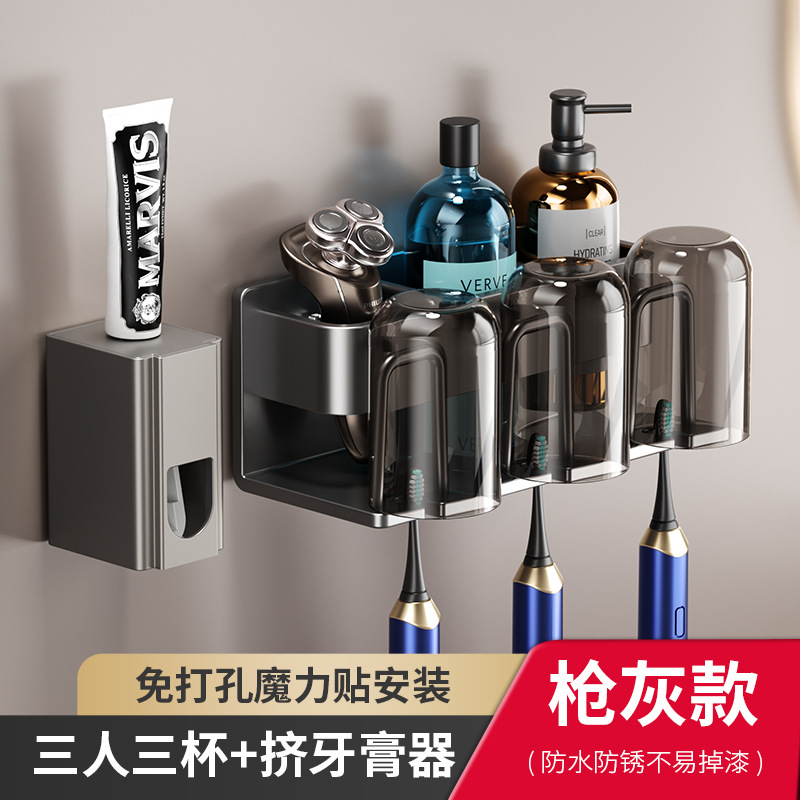 • 건 그레이 치약 압착기 + 컵이있는 3 인용 칫솔 홀더
