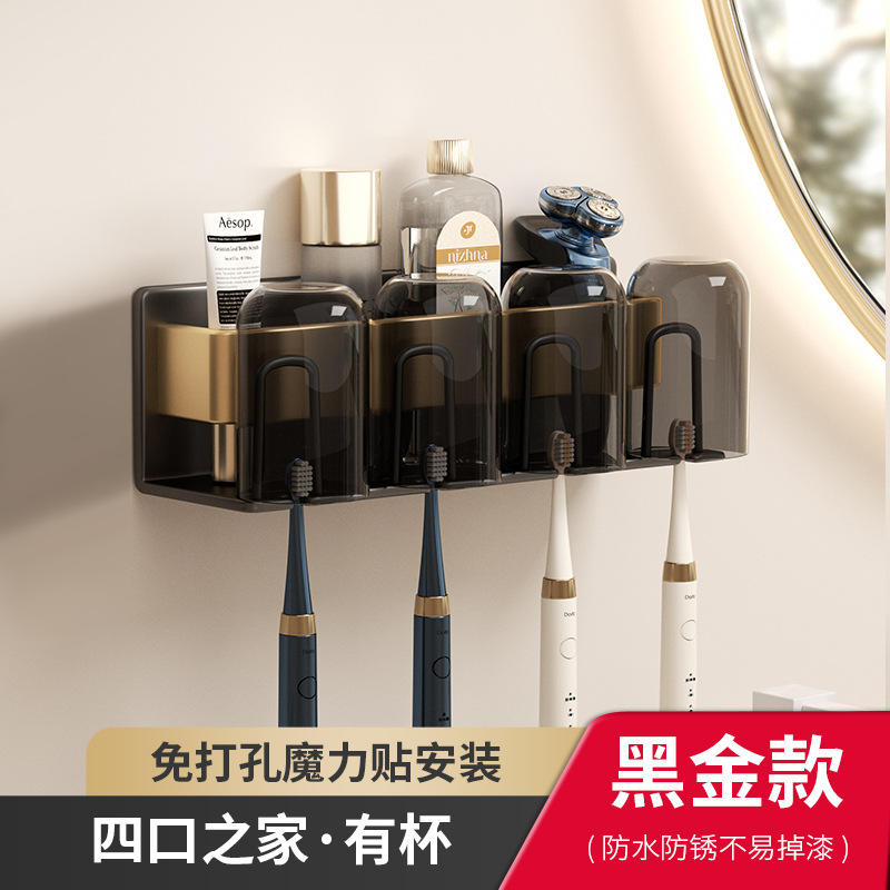 • 4 컵 칫솔 홀더 포함 블랙 골드 4 분