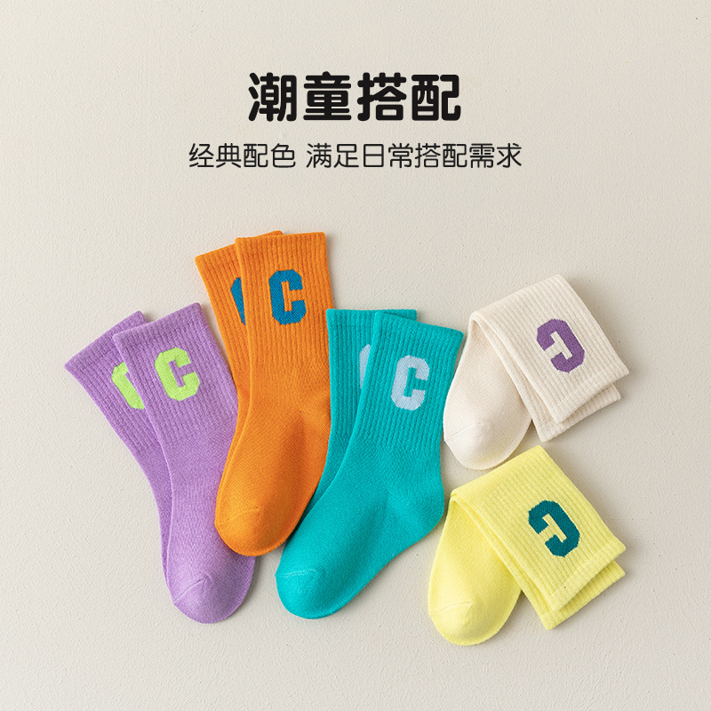 2023 어린이 양말 가을과 겨울 문자 조수 양말 봄과 가을 캔디 컬러면 양말 소년과 소녀 스포츠 양말스토어 가기