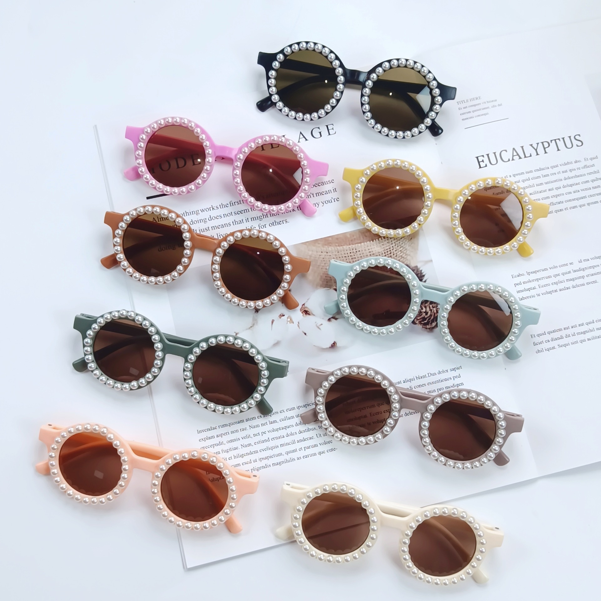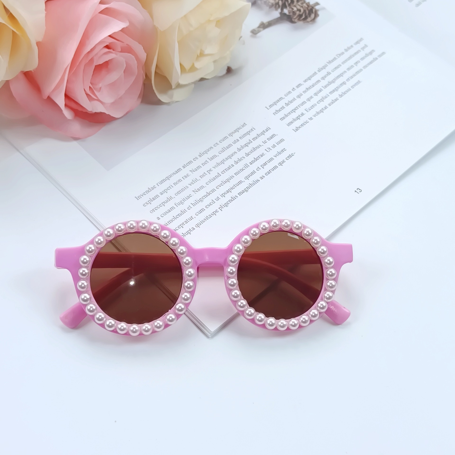 새로운 진주 어린이 선글라스 여성용 귀여운 아기 수제 선글라스 라운드 안티 자외선 차단제 남성용 안경