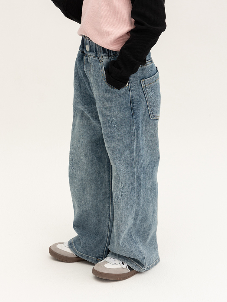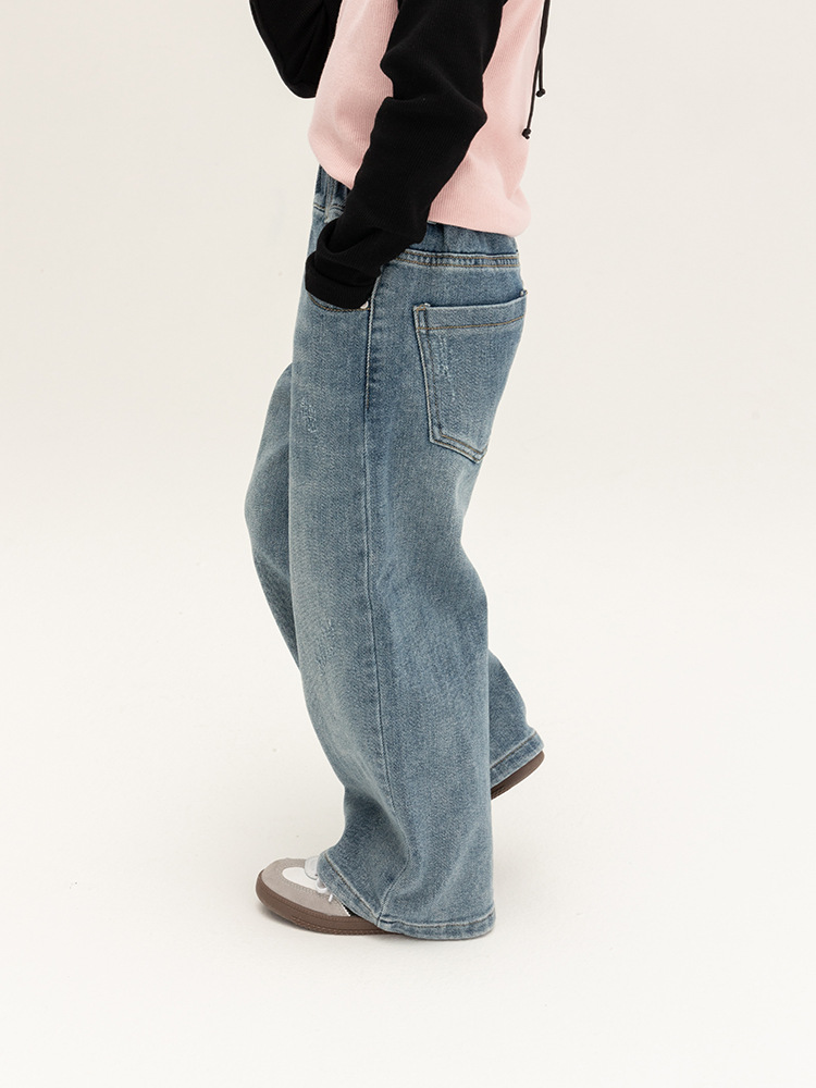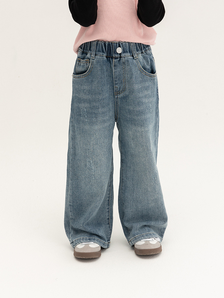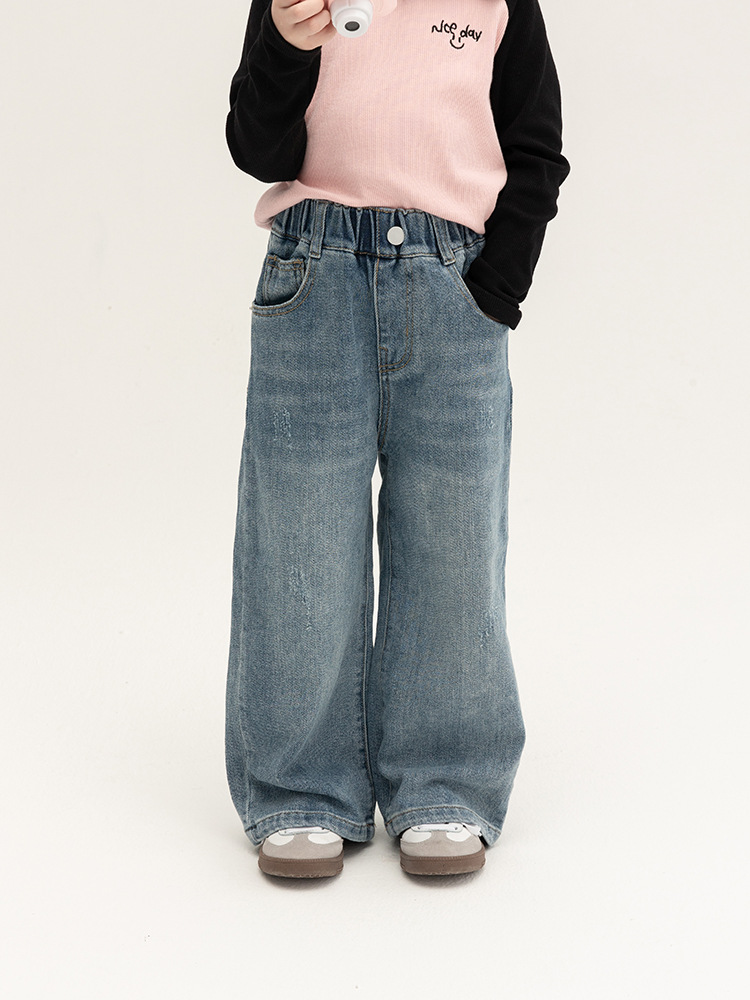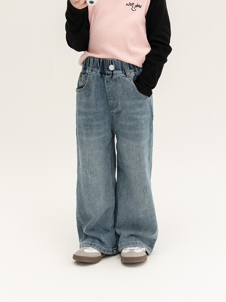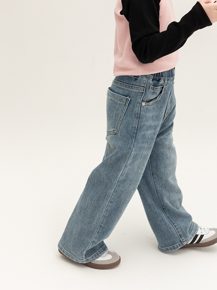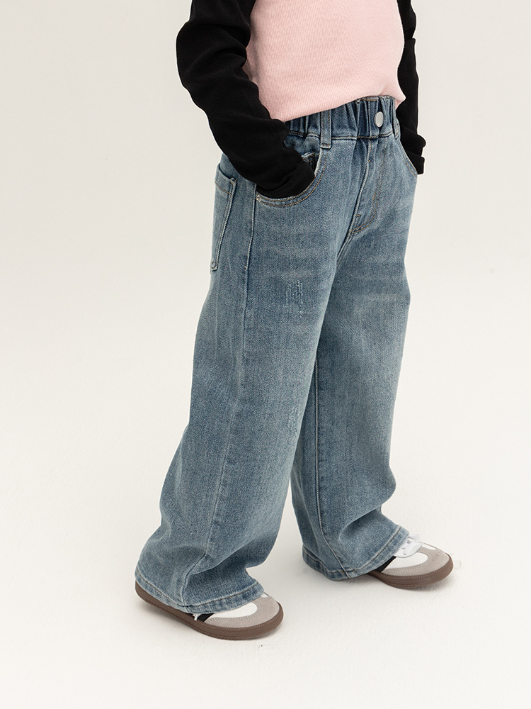 2025 봄 신상 남아 여아용 아동 청바지, 한국식 와이드 팬츠, 활용도 높은 기모 스트레이트 팬츠, 캐주얼 아빠 팬츠스토어 가기