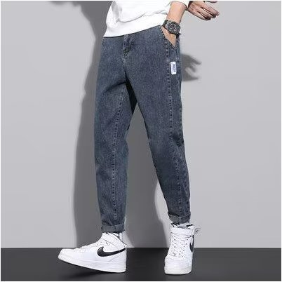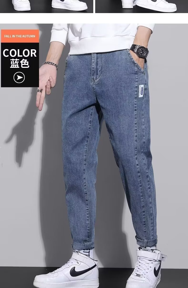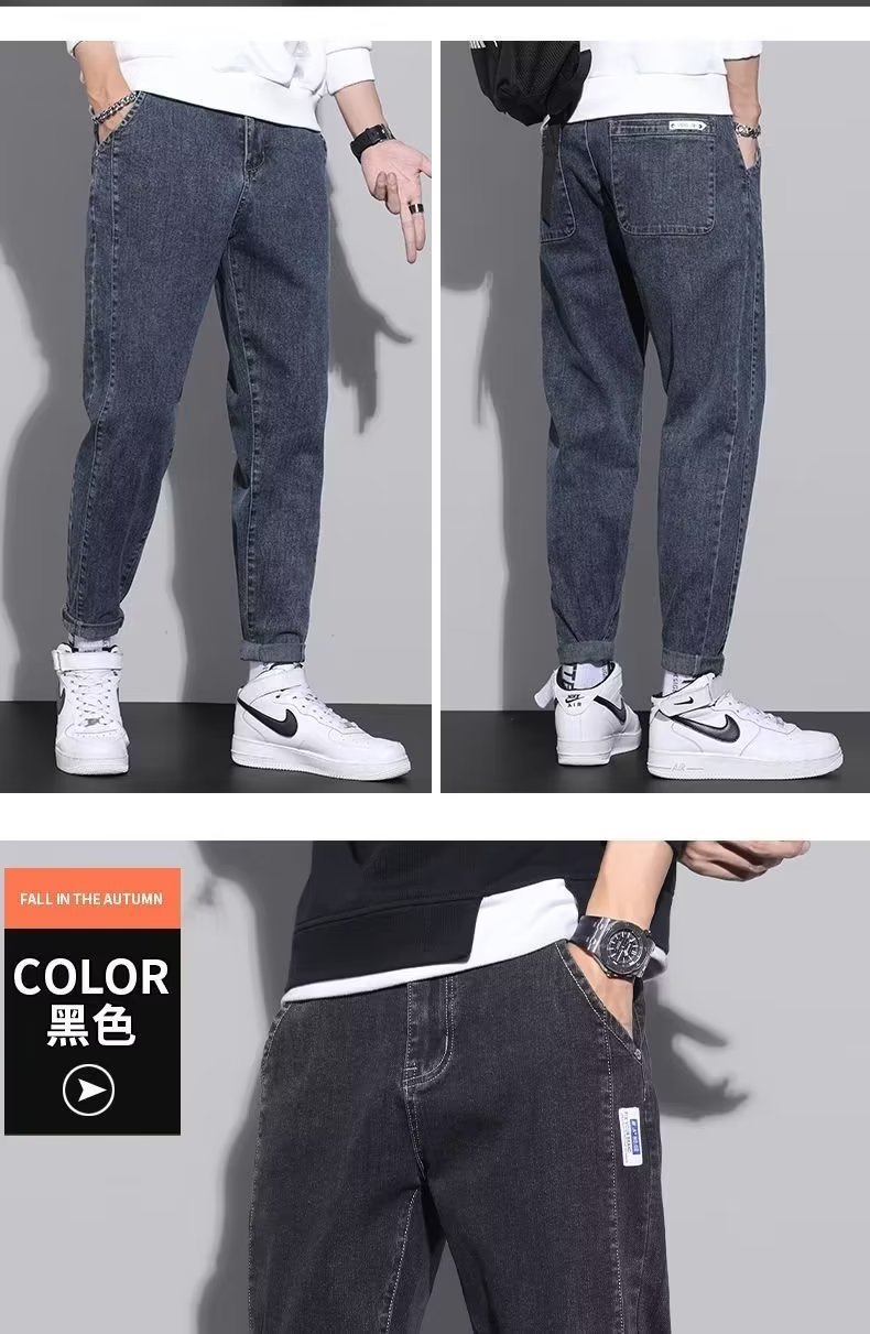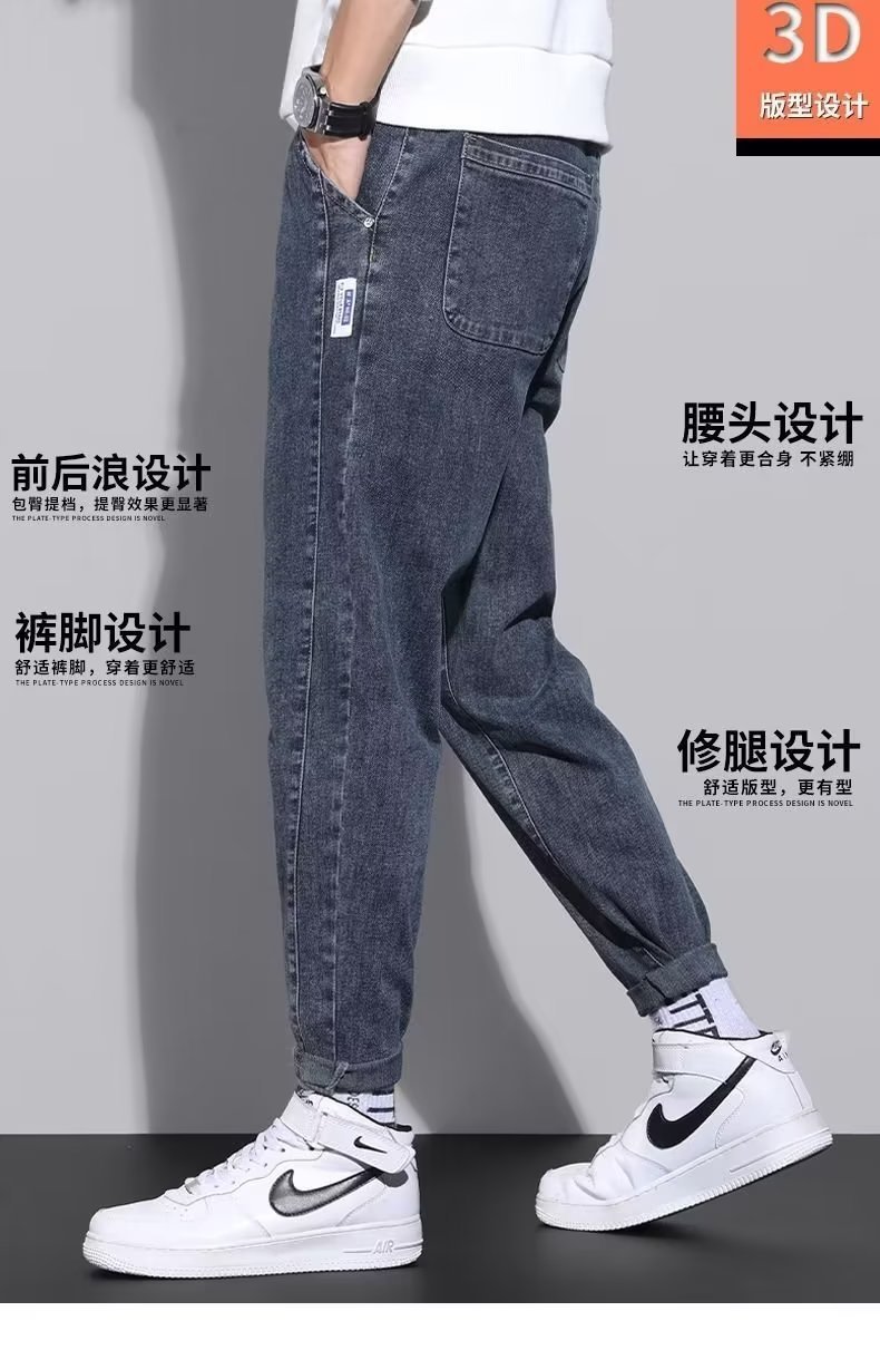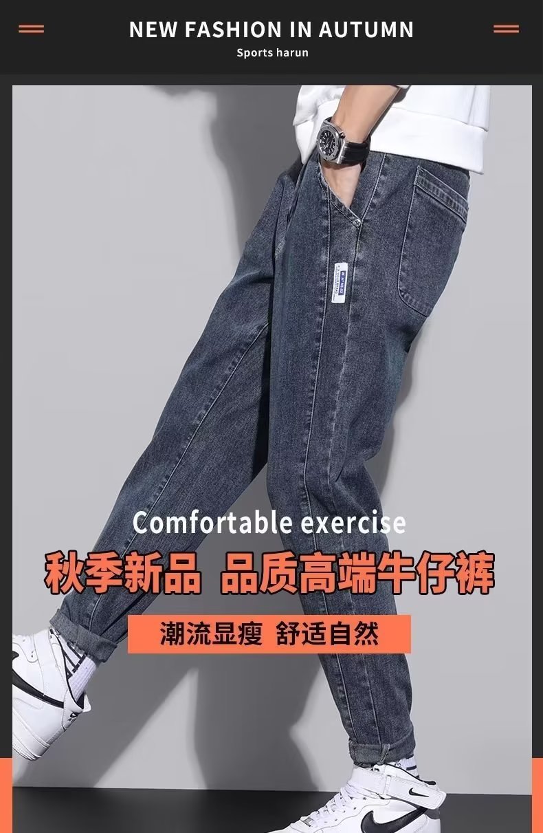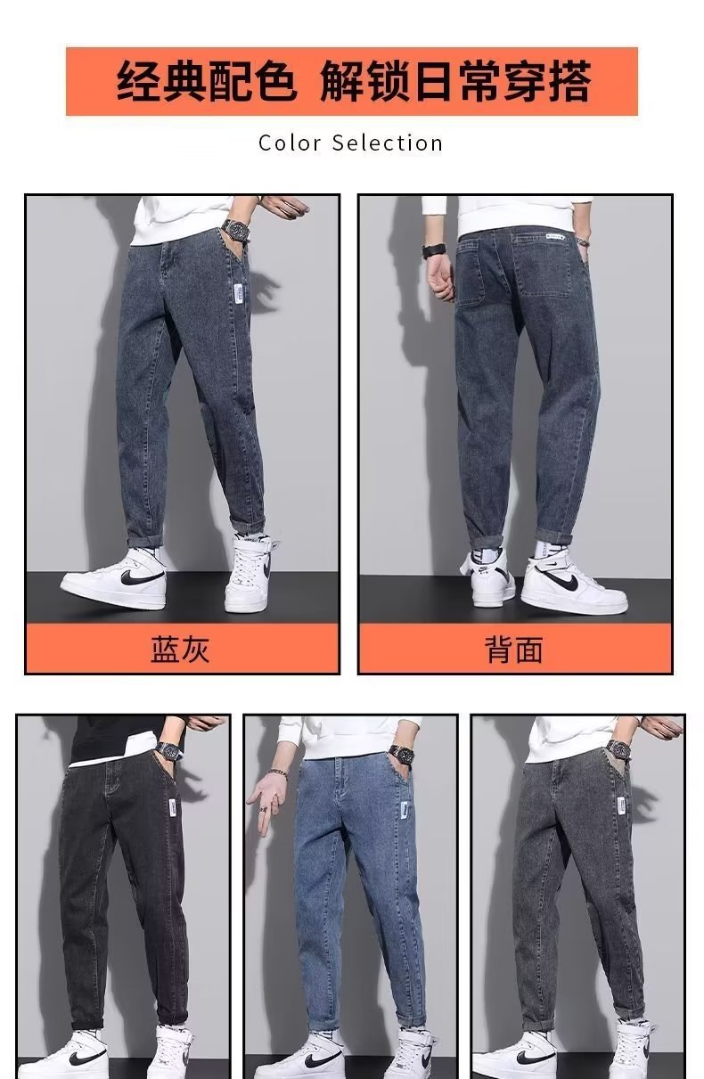 남자의 새로운 유행 하이 웨이스트 진 하렘 바지 세탁 지퍼 청소년 패션 봄 스트레이트 바지스토어 가기