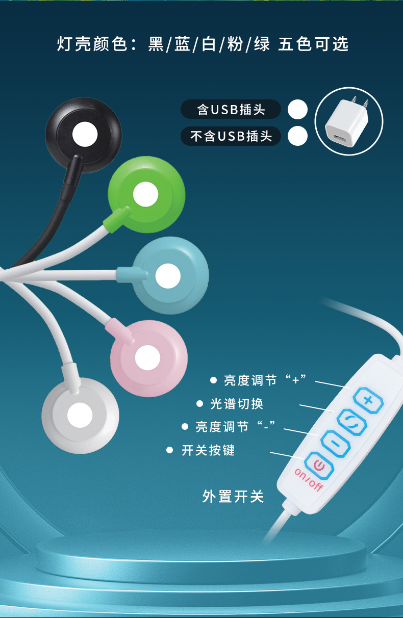 • [블랙 디밍 가능] 5W 원형 소형 클립 램프 USB에는 플러그가 포함되어 있지 않습니다.