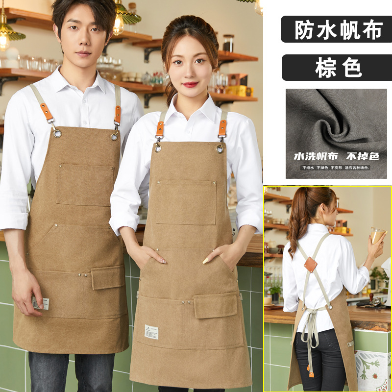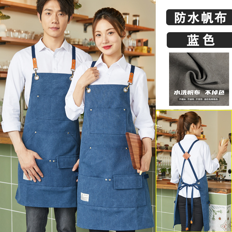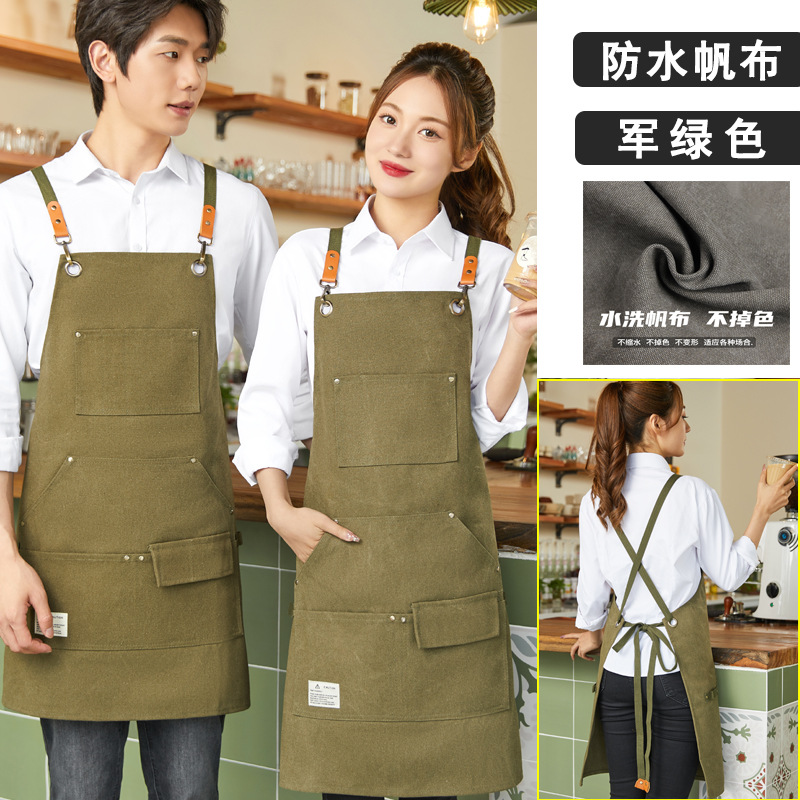대외 무역 방수 두꺼운 캔버스 앞치마 바리 스타 꽃 가게 레스토랑 바 원예 인쇄 로고 작업 앞치마