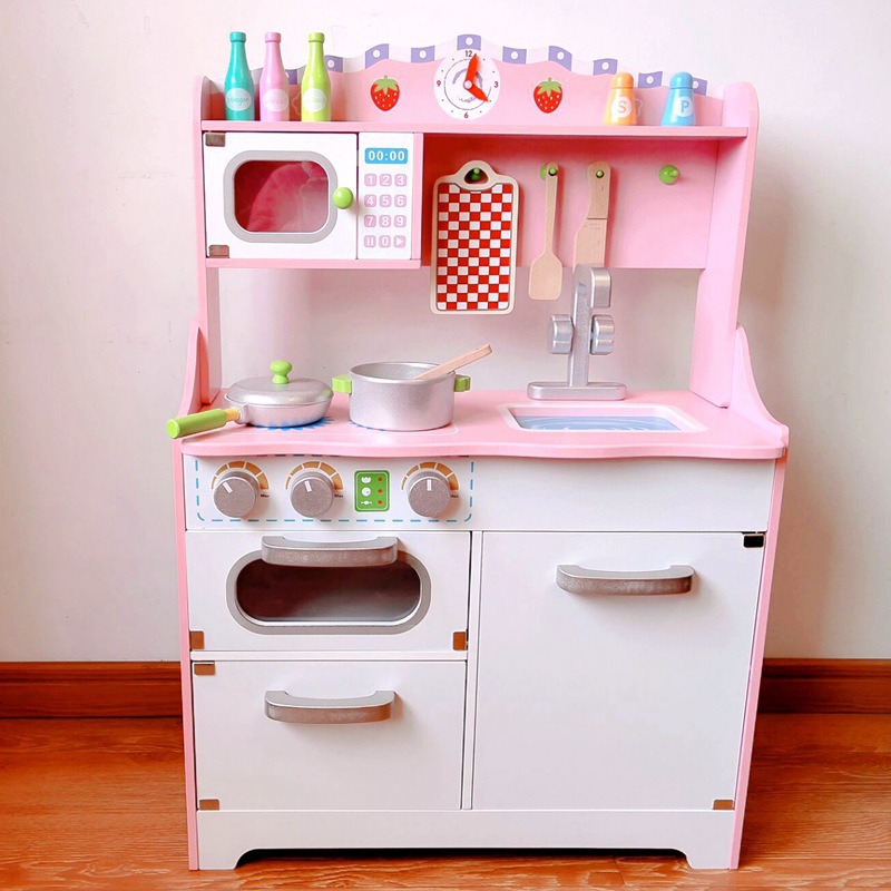 아기 소녀 핑크 주방 스토브 세트 나무 어린이 놀이 가정 나무 주방 요리 장난감 선물스토어 가기